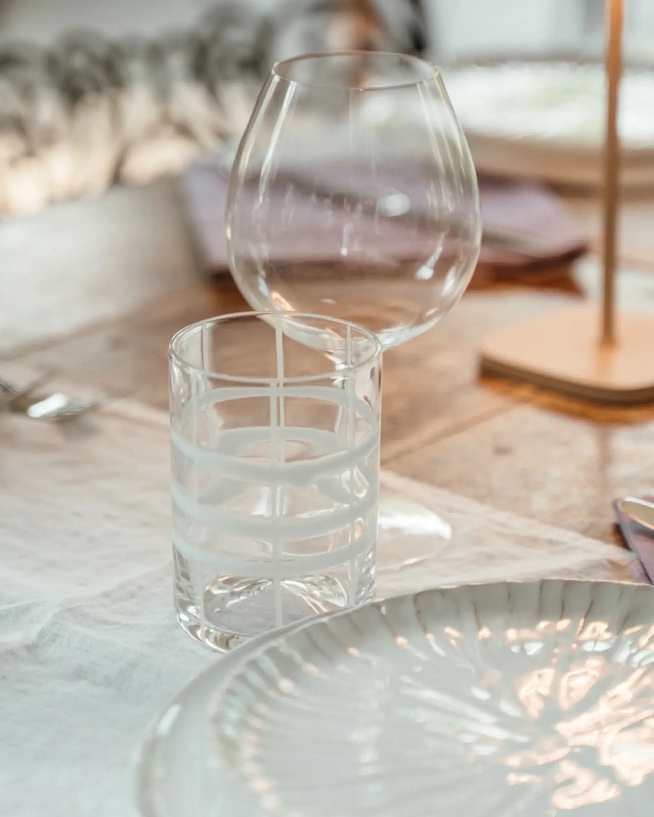 Zafferano's product range extends beyond tumblers to include a stunning collection of glasses, stem glasses, and plates. Each item is crafted with the same meticulous attention to detail, ensuring that every piece is not only functional but also a statement of style and elegance. The use of high-quality materials, such as borosilicate and lead glass, further sets Zafferano apart, offering products that are as durable as they are beautiful.