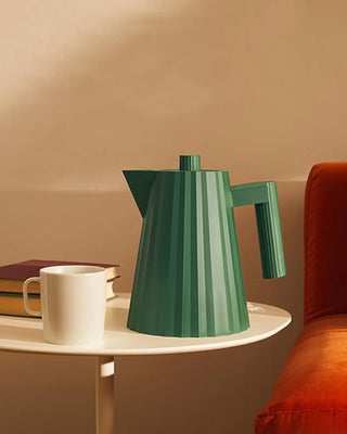 Der Alessi MDL06 Plissè Wasserkocher beweist, dass Haushaltsgeräte sowohl schön als auch praktisch sein können. Gefertigt aus thermoplastischem Harz, verfügt er über skulpturale Falten, die an Haute-Couture-Stoffe erinnern, und ist damit mehr als nur ein Küchenwerkzeug – es ist ein Design-Statement. Ausgestattet mit einer Leistung von 2400W und einem europäischen Stecker, erhitzt dieser leistungsstarke Wasserkocher schnell Wasser und steht dabei elegant auf Ihrer Arbeitsplatte.