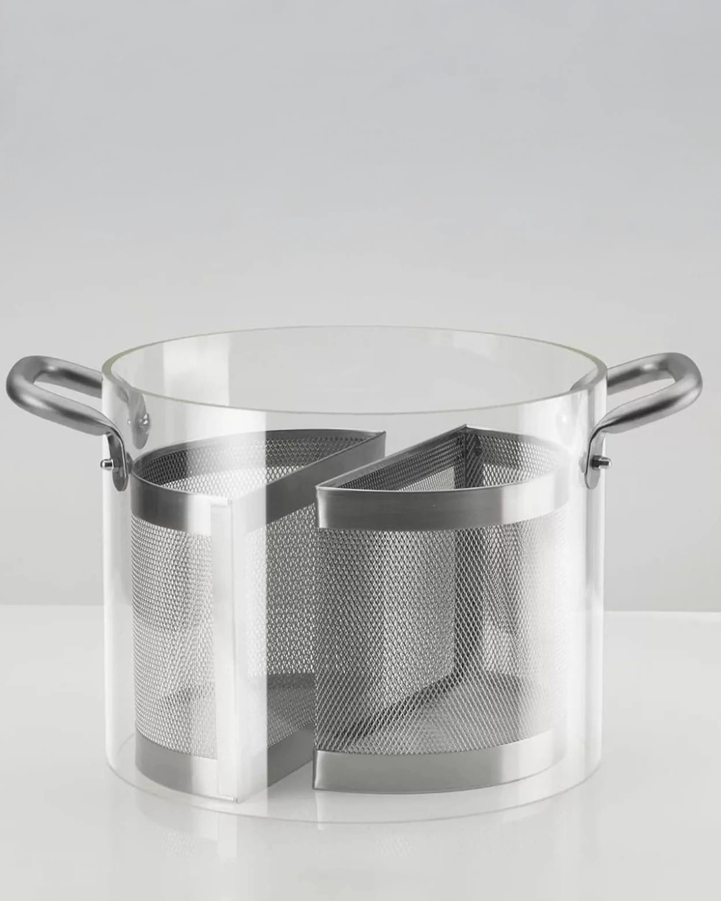 Hergestellt aus hochwertigem Stahl, ist dieser Pasta-Sektor für Leistung gebaut. Entworfen von KnIndustrie, ist er so konstruiert, dass er nahtlos in Ihren Lieblingstopf passt, insbesondere in den ikonischen Glass Pot, und verwandelt einen einfachen Topf mit kochendem Wasser in eine optimierte Kochstation. Er funktioniert wie ein Edelstahl-Sieb in Ihrem Topf, sodass Sie Pasta leicht heben und abtropfen lassen können, ohne separate Siebe oder zusätzlichen Aufwand.