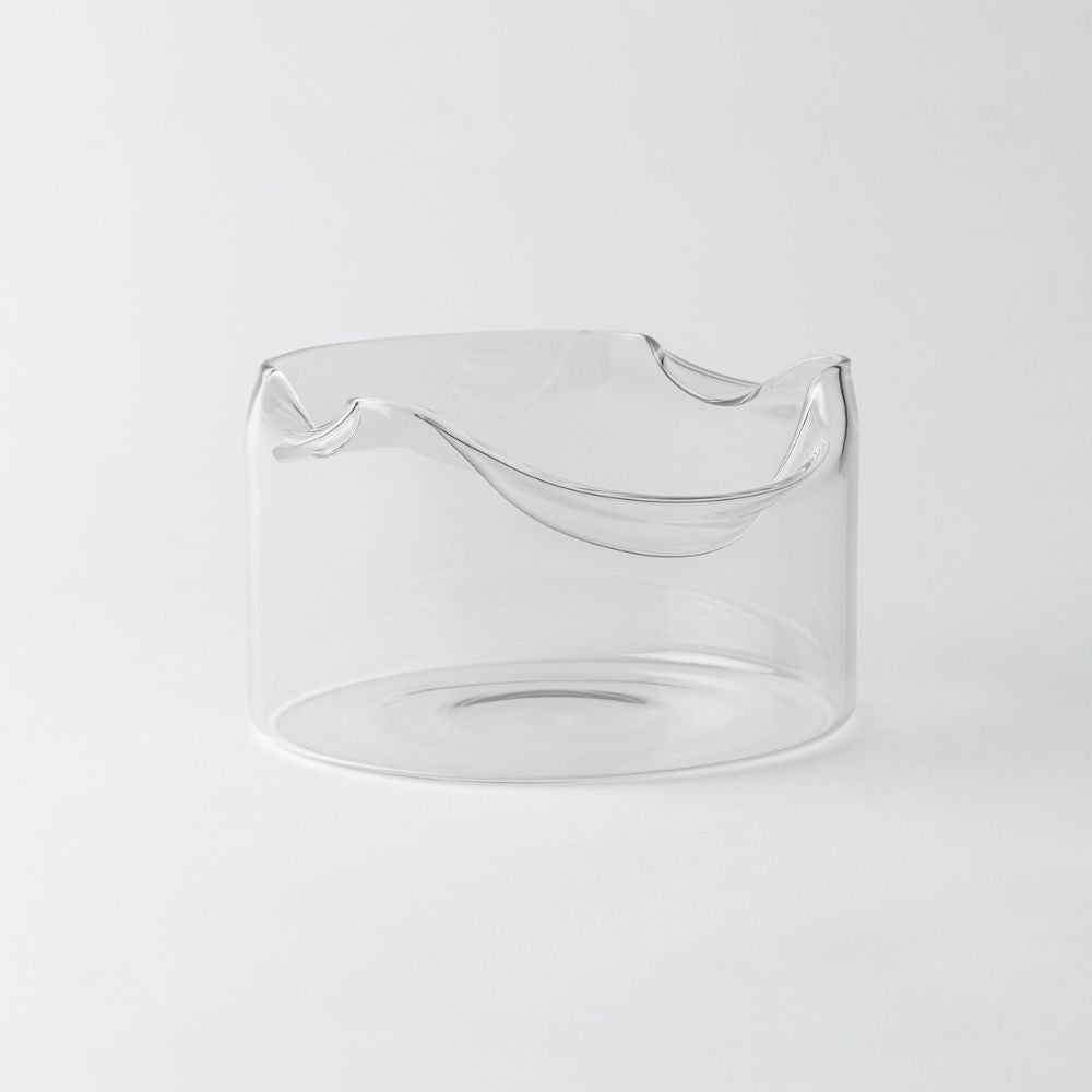 Wenn es darum geht, alltägliche Rituale mit Eleganz neu zu gestalten, führt KnIndustrie den Weg an. Der Shapeless bread basket ist eine auffällige Interpretation des traditionellen Brotdienstes und verwandelt eine einfache Handlung in einen kuratierten Moment. Hergestellt aus Borosilikatglas, ist er ein zartes Paradoxon – ätherisch im Aussehen, aber darauf ausgelegt, zu bestehen. Seine fließende Form, unregelmäßig und organisch, ruft das Wesen handwerklicher Kunstfertigkeit hervor und passt perfekt zur minimalistischen Poetik modernen Tischdesigns.