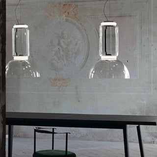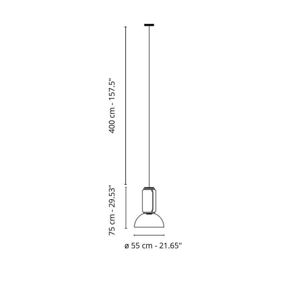 Dimmbare Hängeleuchte – Innenbereich – Leuchte bestehend aus einem Modul aus mundgeblasenem Glas – Ringdiffusoren aus optischem Silizium – Kuppelförmiger Lampenschirm – Länge des Hängekabels: 4 Meter