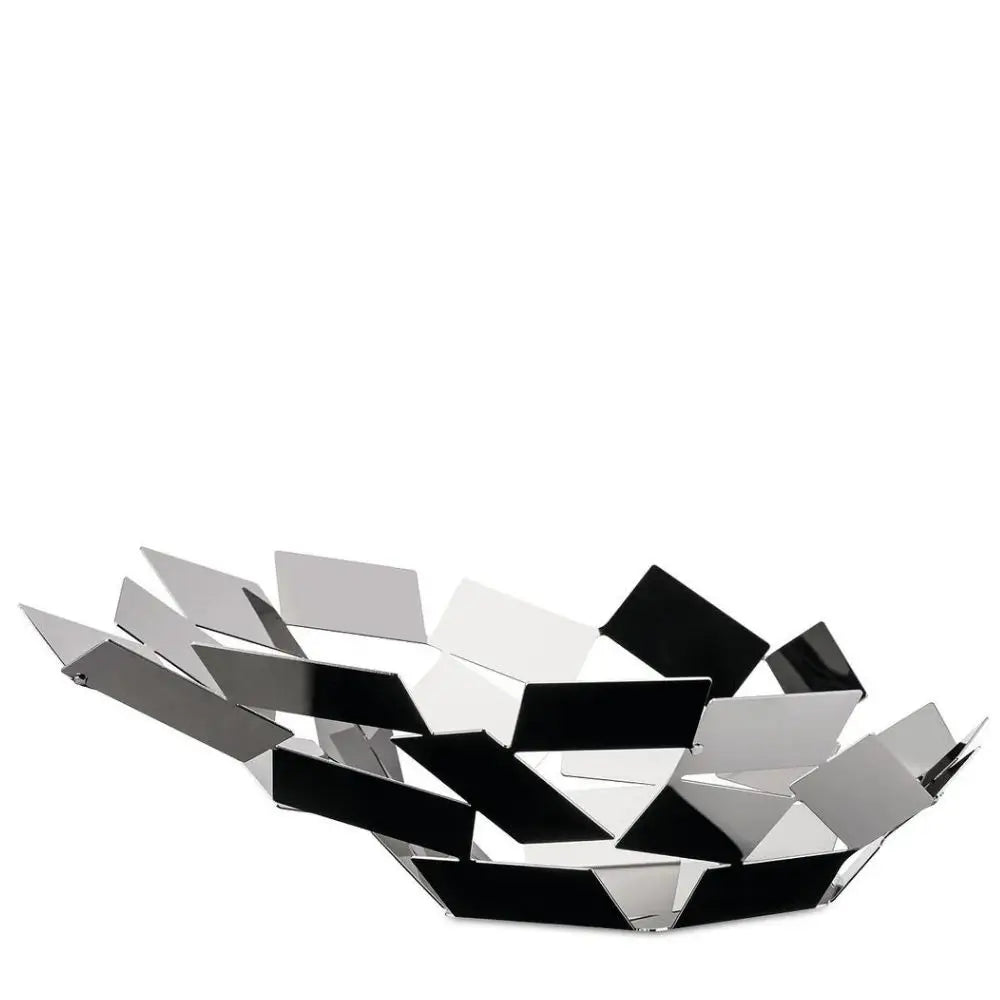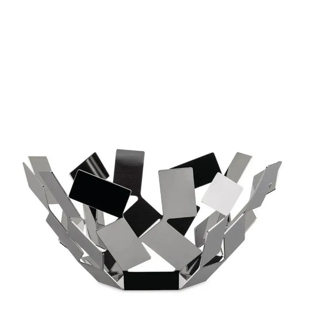 Inspiriert von der stillen Ruhe eines windstillen sizilianischen Zimmers bringt der Alessi MT0 La stanza dello Scirocco Korb/Obsthalter/Mittelstück Bewegung und Erinnerung in Metall. Seine fragmentierten geometrischen Paneele reflektieren und streuen das Licht, werfen dynamische Schatten, die sich im Laufe des Tages verändern. Dieses ausdrucksstarke Stück gehört zur Kategorie Alessi Bowls und veredelt jede Oberfläche, die es berührt, sei es funktional oder dekorativ.