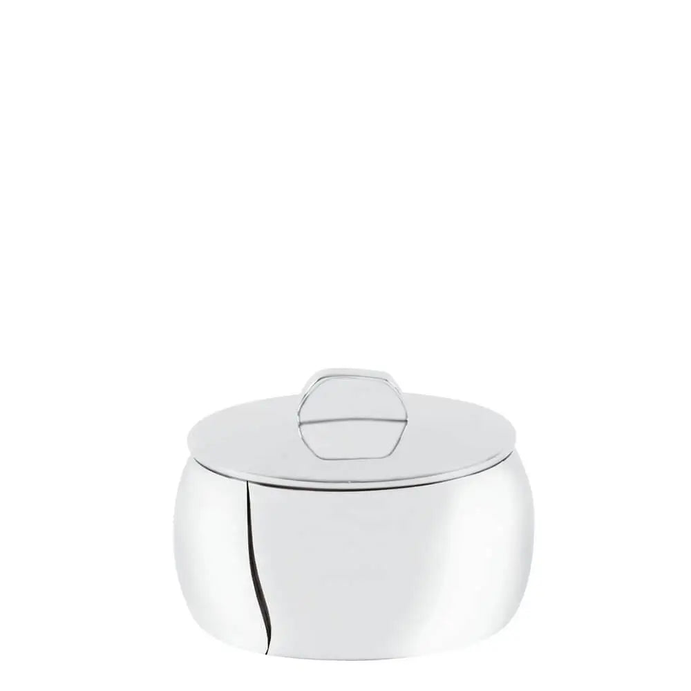 Entwickelt von Sambonet Design folgt die Dose der charakteristischen sphärischen Geometrie der Kollektion. Der Deckel ruht nahtlos auf dem abgerundeten Körper und bewahrt die Kontinuität der Silhouette, während er den Zucker schützt. Diese visuelle Kohärenz schafft ein skulpturales Objekt, das aus jedem Blickwinkel ausgewogen wirkt. Im Bereich Premium elegantes Teeservice-Zuckerbehälter-Design zeigt das Stück, wie minimale Geometrie die ästhetische Identität eines modernen Kaffeeservices prägen kann.