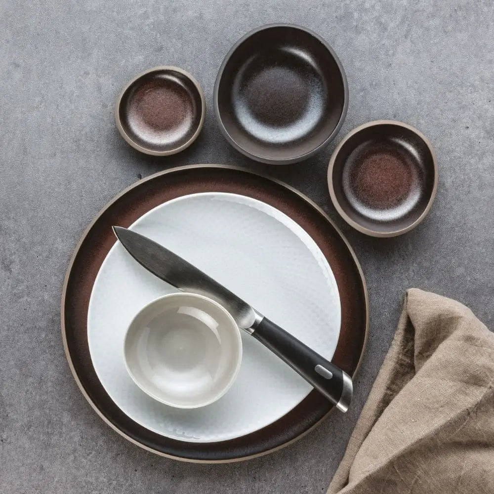 Entwickelt von Sambonet Design, verbinden die Messer technische Leistung mit ergonomischem Komfort. Die Klinge geht nahtlos in den Griff über und gewährleistet strukturelle Kontinuität bei gleichzeitig elegantem Profil. Der POM-Griff bietet einen stabilen Halt, der kontrollierte Schneidbewegungen auch bei längeren Mahlzeiten ermöglicht. Die Gewichtsverteilung zwischen Klinge und Griff stabilisiert das Messer beim Schneiden – eine wesentliche Eigenschaft bei designorientierten Fleischmessern, die sowohl für zwangloses Grillen als auch für gehobene Esstische gedacht sind.