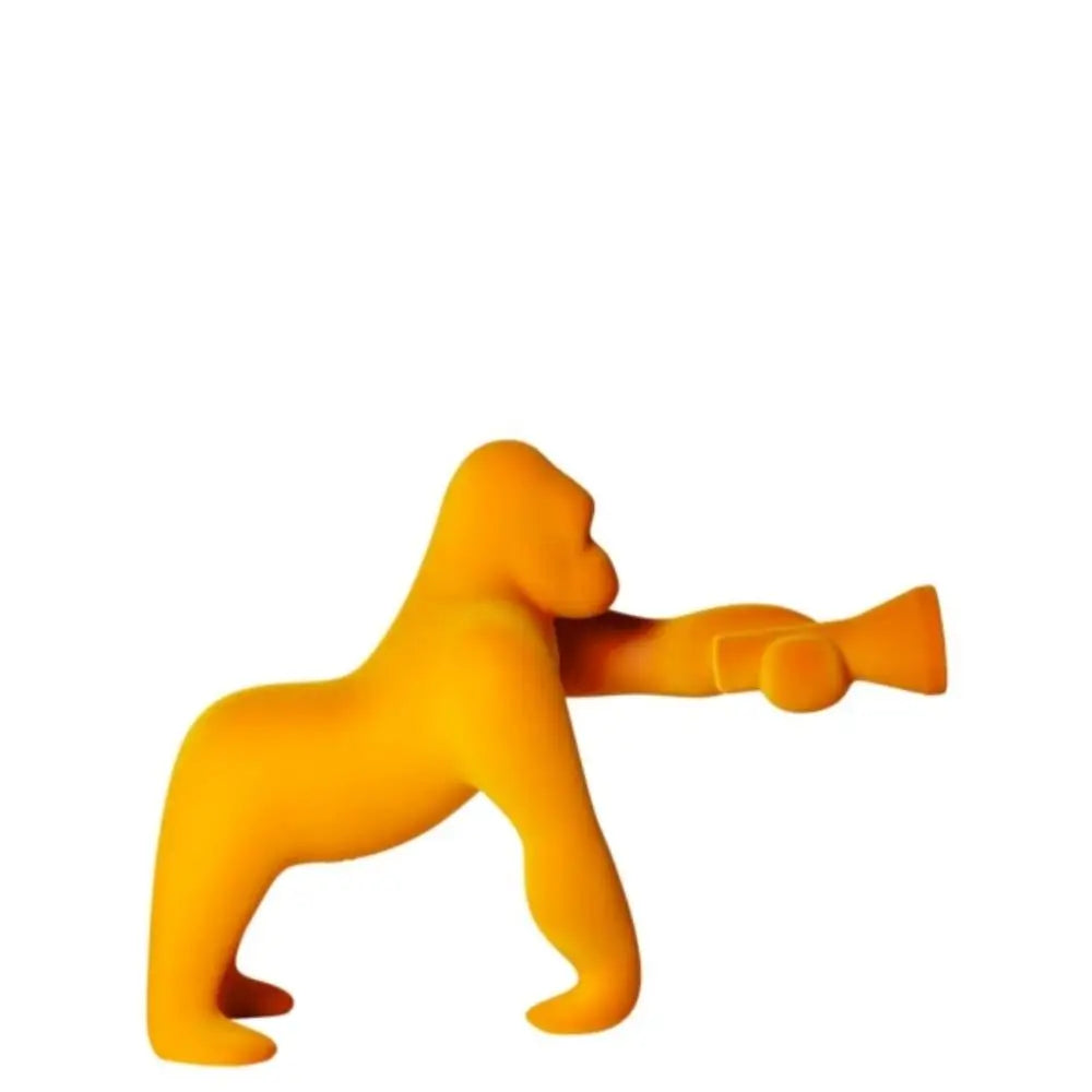 Gefertigt aus widerstandsfähigem Polyethylen, verfügt die Kong XS Samt-Finish Lampe über eine besondere Oberflächenbehandlung, die an die Tiefe und Weichheit von Samt erinnert und eine feine Wechselwirkung mit Licht schafft. Erhältlich in Dunkel Samt Gold, Samt Orange, Rot Samt, Samt Fuchsie, Samt Violett und Türkis Samt, verleiht jede Ausführung der Lampe eine eigene Persönlichkeit. Der Samteffekt betont die skulpturalen Formen des Gorillas und verwandelt diese Gorilla-Skulptur-Leuchte in ein fühlbares und optisch reichhaltiges Objekt, das auch im ausgeschalteten Zustand auffällt und dazu bestimmt ist, Qeeboo Sitzbereiche zu ergänzen.