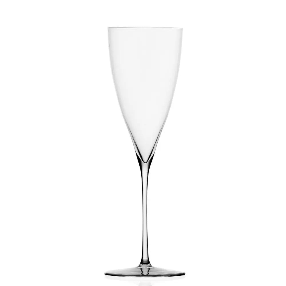 Die Ichendorf Solisti flute smooth hebt den Service von Schaumwein auf ein Niveau kristalliner Essenzialität. Entworfen von Marco Sironi, verkörpert dieses 28 cl mundgeblasene Flötenglas die Solisti-Philosophie: Jedes Glas ist um die Persönlichkeit eines einzelnen Künstlers geformt. Hier ist der Künstler das Perlage selbst. Die hohe, schlanke Kelchform verlängert den Aufstieg der Bläschen und zeigt jede Nuance von Prosecco, Champagner, Franciacorta oder modernen Schaumweinmischungen. Die Silhouette ist bewusst klar und ununterbrochen, sodass das Licht frei durch das Glas wandern kann und das Getränk wie in einer Säule aus Klarheit schwebend erscheint.