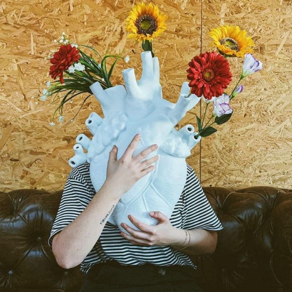 Crafted in fiberglass yet listed among the Seletti’s porcelain-based collections, the vase balances sculptural precision with lightness, making it easy to position despite its size. Each anatomical detail, arteries, veins, chambers, is modeled to become a vessel for flowers or branches, turning natural elements into part of a larger narrative. Available in white or gold, as noted in the product family, it adapts to contrasting atmospheres: white for pure, luminous arrangements; gold for bold, theatrical displays. As part of the Seletti's Objects collection, the Seletti Love In Bloom project, and the Marcantonio Raimondi Malerba and Seletti creative universe, this piece resonates with the designer’s ongoing exploration of emotion, anatomy, and contemporary symbolism. For decorators searching for how to create statement floral installations or seeking a modern sculpture vase with emotional gravity, the Giant edition offers a uniquely impactful solution.An Oversized Icon for Celebrations and Curated Interiors