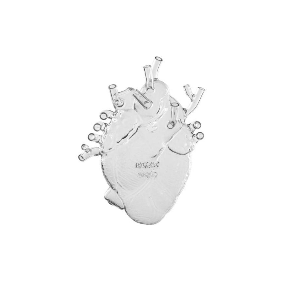 The Seletti Love In Bloom Glass heart vase in glass suits interiors that value symbolic storytelling: romantic settings, minimalist homes, eclectic environments, and curated spaces that embrace expressive forms. For buyers wanting to buy Love In Bloom glass vase pieces or searching for a meaningful gift for design lovers, this clear heart becomes a poetic choice. It also appeals deeply to admirers of Marcantonio Raimondi Malerba design and enriches any Marcantonio Raimondi Malerba collection with a luminous, sculptural accent. Whether used as a clear glass flower vase for everyday arrangements or as a striking wall-mounted piece, it remains a symbol of how love, anatomy, and design can be woven into a single, unforgettable object.Seletti Love In Bloom Glass heart vase in glass