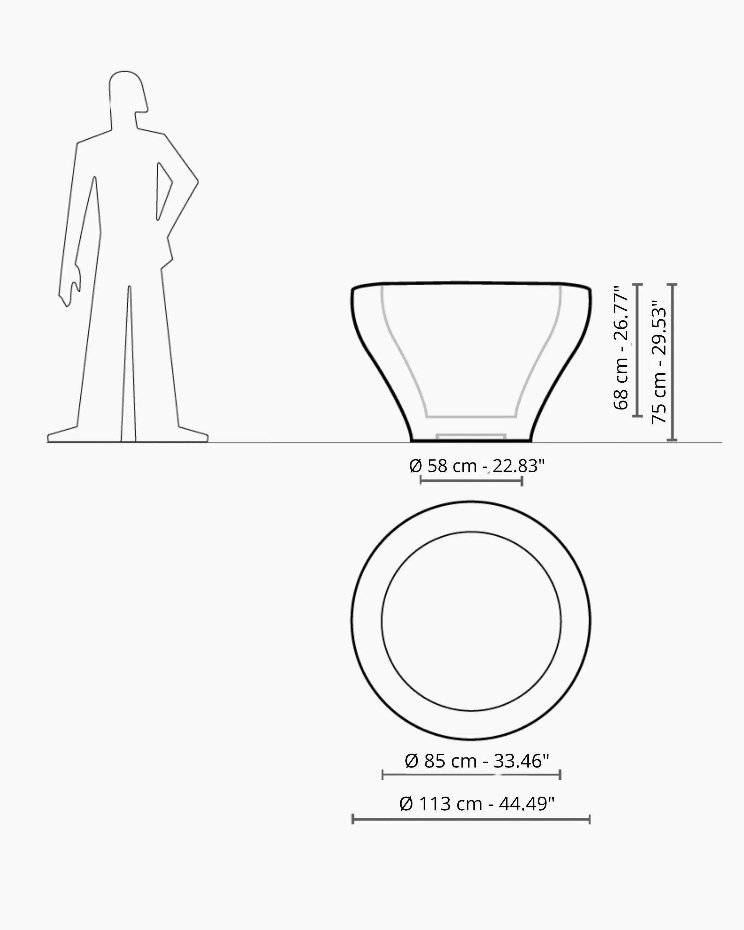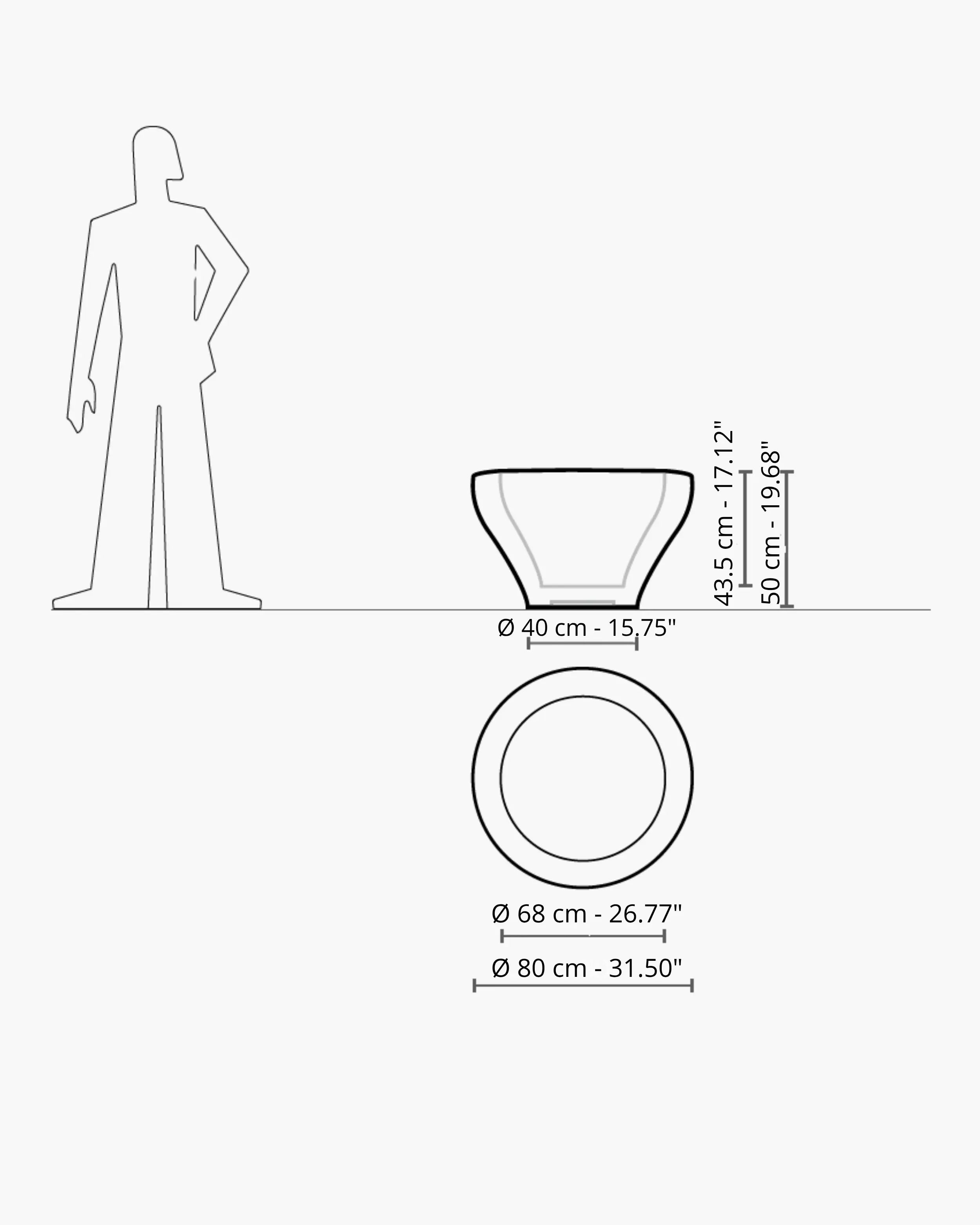 Unter ihrem zarten Erscheinungsbild verbirgt sich ein robuster Körper aus Polyethylen, der entwickelt wurde, um UV-Strahlen, Stößen und extremen Temperaturen von -35°C bis +80°C standzuhalten. Vollständig recycelbar und lösungsgefärbt garantiert der Ming Moleskin Pflanzer langanhaltende Haltbarkeit und spricht Innenarchitekten und Landschaftsarchitekten an, die sowohl Leistung als auch ästhetische Raffinesse schätzen.