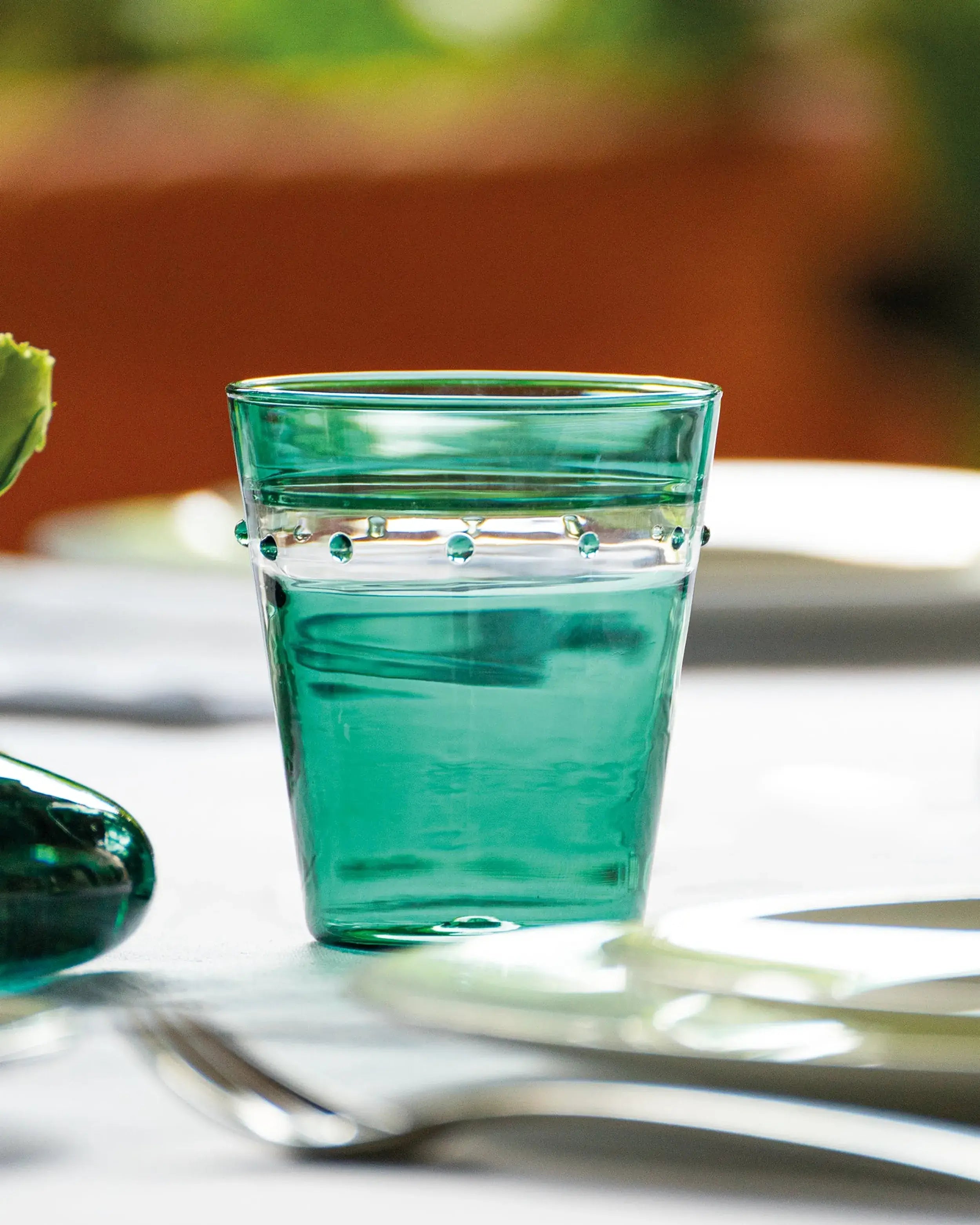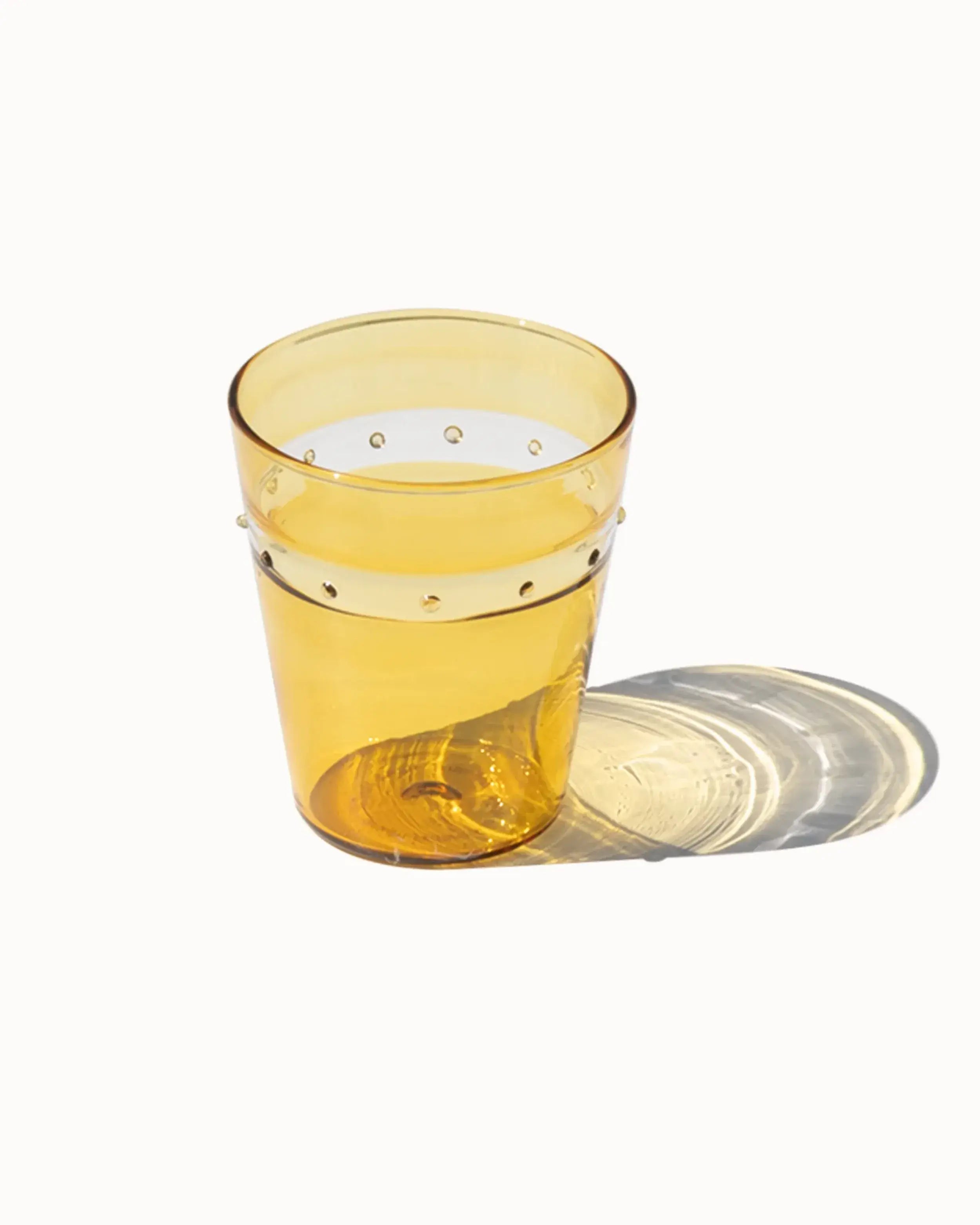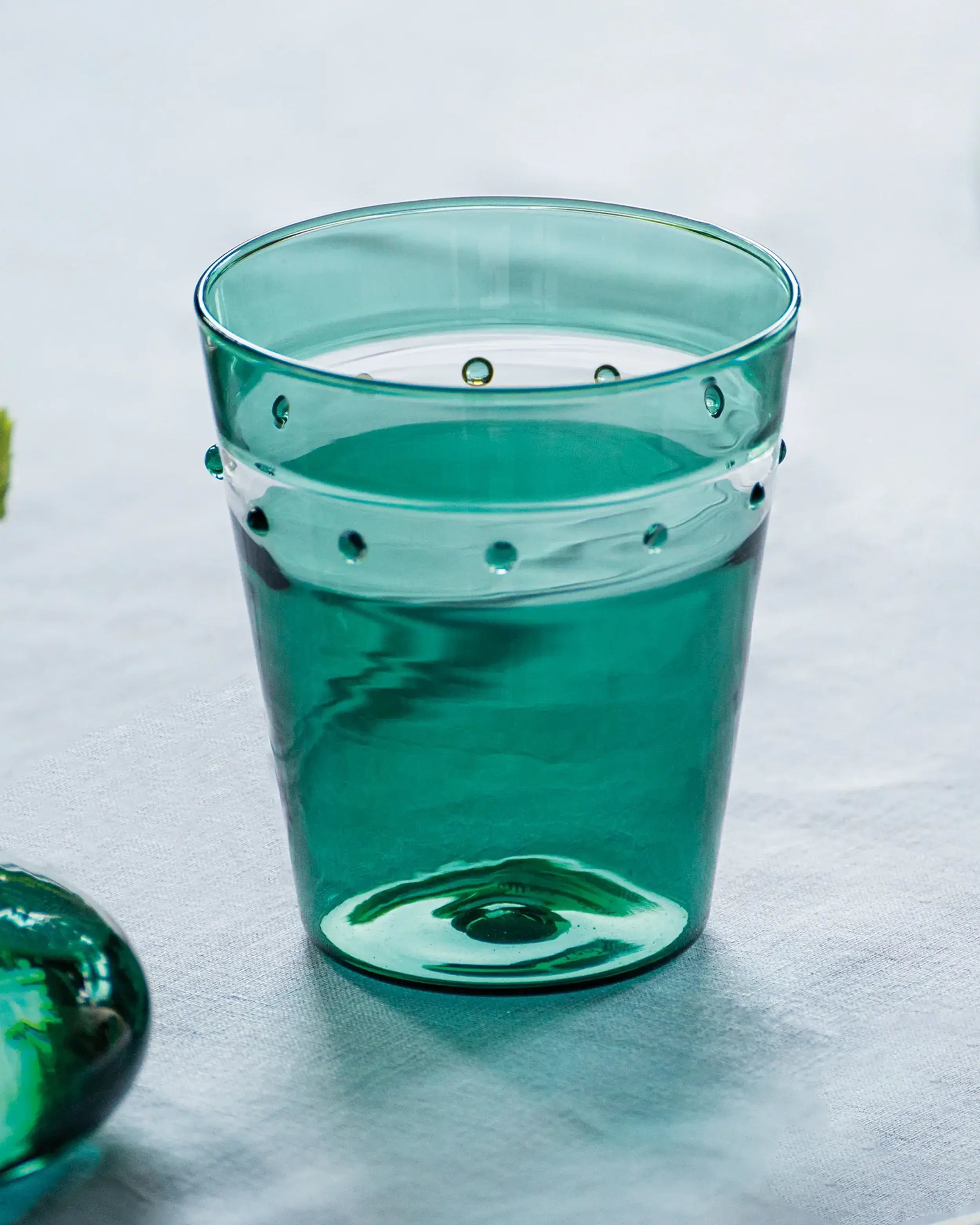 Handgefertigt aus hochwertigem geblasenem Borosilikatglas, besticht der Tumbler A Pallini von Zafferano durch eine leichte und dennoch robuste Konstruktion. Sein markantes Polka-Dot-Design verleiht einen verspielten und zugleich anspruchsvollen Charme, der ihn zu einem herausragenden Stück in jeder Tischdekoration macht. Ob Sie Wasser, Cocktails oder Saft servieren, dieser Tumbler hebt das Esserlebnis auf ein neues Niveau.