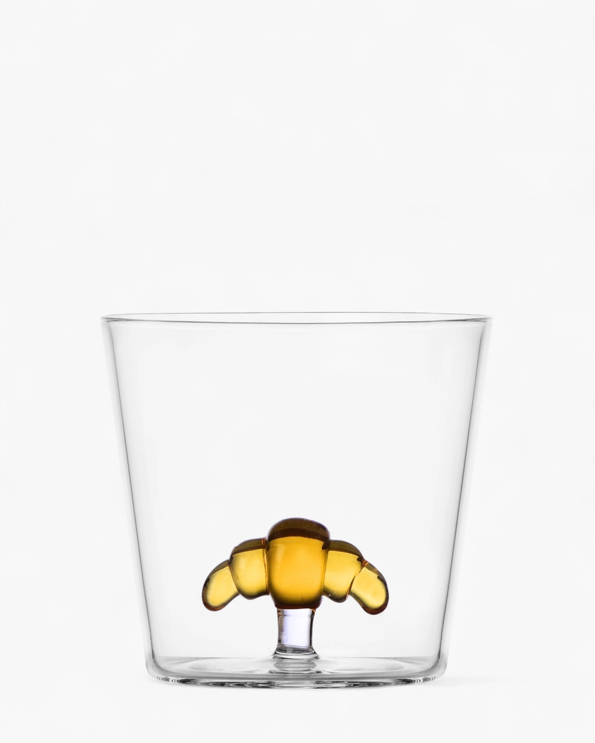 Entworfen von Alessandra Baldereschi, verwandelt der Ichendorf Patisserie Tumbler den Charme französischer Patisserie in ein verspieltes Geschirrstück. Handgefertigt aus Borosilikatglas, verbirgt jeder Tumbler im Inneren eine Miniatur-Glasskulptur in Form ikonischer Desserts: Erdbeerkuchen, Charlotte mit Himbeere, Millefeuille, Blaubeerkuchen, Charlotte mit Brombeere oder ein Croissant. Das Ergebnis ist eine Kollektion, in der Glas und Patisserie in herrlicher Harmonie aufeinandertreffen.