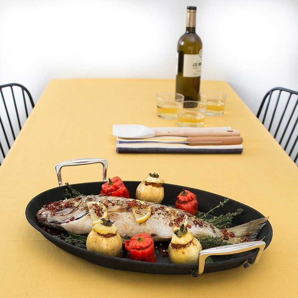 Le Creuset ovale Fischpfanne mit gehärteter Antihaftbeschichtung, 40 cm.