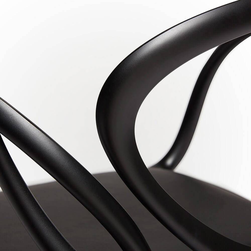 Erhältlich in klassischem Schwarz und Weiss, verfolgt das Loop Set aus 2 Stühlen einen reduzierten farblichen Ansatz, der die Reinheit des Designs hervorhebt. Schwarz verstärkt die grafische Kraft und die skulpturale Tiefe der Form, während Weiss Leichtigkeit und Kontinuität betont. Diese zurückhaltende Palette erlaubt es den Stühlen, sich nahtlos in eine Vielzahl von Innenräumen einzufügen, von minimalistischen Essbereichen bis hin zu ausdrucksstärkeren zeitgenössischen Räumen. In Kombination mit Elementen aus der Qeeboo Tische-Kollektion tragen die Stühle zu einer stimmigen und ausgewogenen Essumgebung bei.