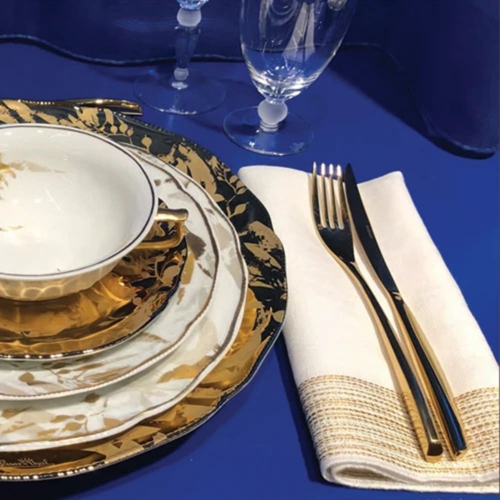 Jede Heritage-Kollektion hat unterschiedliche Formen und Farben und ist von verschiedenen Epochen und Kulturen inspiriert. Die Heritage Midas-Kollektion ist vom mythologischen König Mida inspiriert: Alles, was er berührte, verwandelte sich in Gold. Die Dekoration besteht aus Zweigen und Blättern. Komplett aus Porzellan. Es kann in der Spülmaschine gewaschen werden.