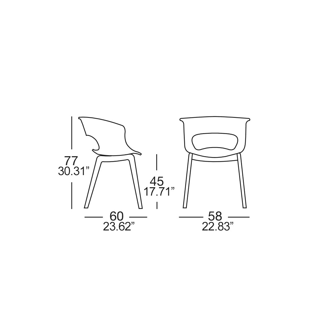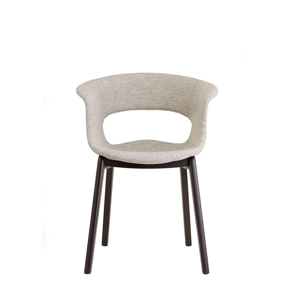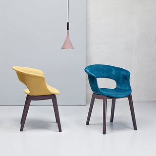 Sessel von Scab Design. Seit über 50 Jahren ist Scab die Marke, die zu 100 % in Italien hergestellt wird und zu einem führenden Unternehmen in der Möbelbranche wird. Stühle, Sessel, Hocker und Tische werden mit Liebe zum Detail hergestellt und aus hochwertigen Rohstoffen entworfen. Seit 1957 beschäftigt sich die italienische Marke mit Innen- und Außendesign und dekoriert Büros, Restaurants und sogar Wohnräume mit Stil und Eleganz. Alles mit der typischen Eleganz, die Scab Design auszeichnet. Holzsessel, entworfen von Luisa Battaglia. Sessel mit Beinen aus Wengé-Buche, gepolstertem Korpus und Kern aus Polycarbonat. Nicht abnehmbare Polsterung. Scab Design Natural Miss B Pop-Sessel mit Beinen aus Wengé-Buche und Stoffsitz.