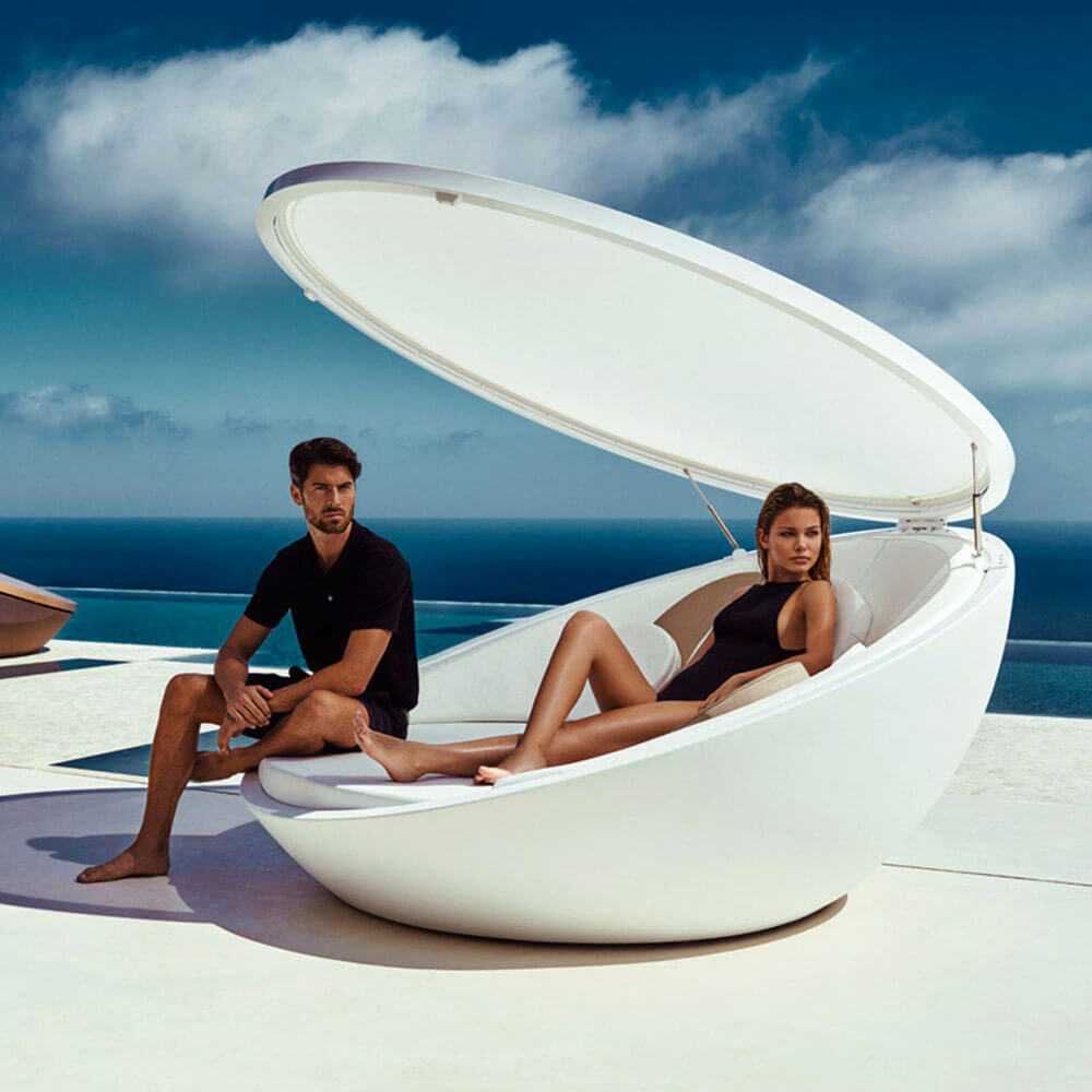Verwandeln Sie Ihren Außenbereich mit Ramón Esteves ikonischen Designs, von Vela-Modulsofas bis hin zu Faz-Stühlen, die Eleganz mit Funktionalität verbinden.