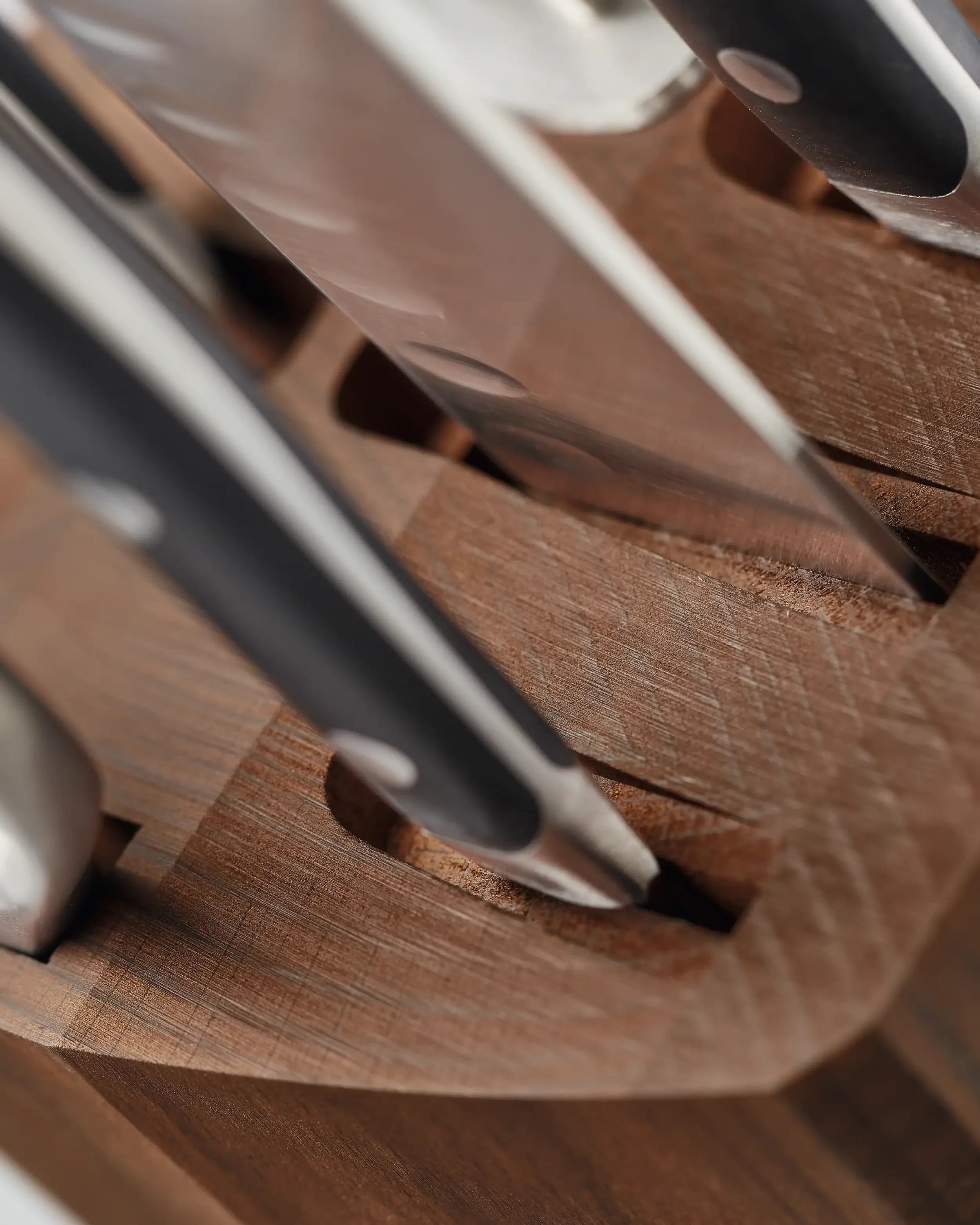 Dieser wusthof Messerblock eignet sich zum Halten von bis zu 6 wichtigen Messern und 2 Zubehörteilen – wie Scheren oder Wetzstahl – und ermöglicht Ihnen schnellen Zugriff auf alles, was Sie brauchen. Ob Sie Ihr erstes Wüsthof Set zusammenstellen oder Ihr aktuelles wusthof Messerblock Set erweitern, ist dieser Block der ideale Ausgangspunkt für stilvolle Küchenpräsentation.