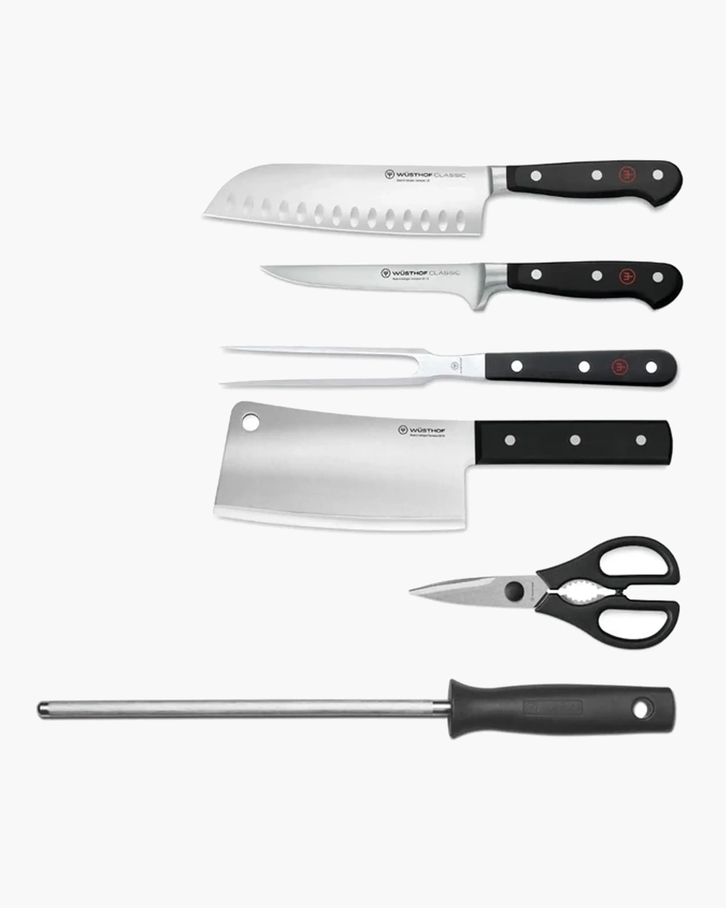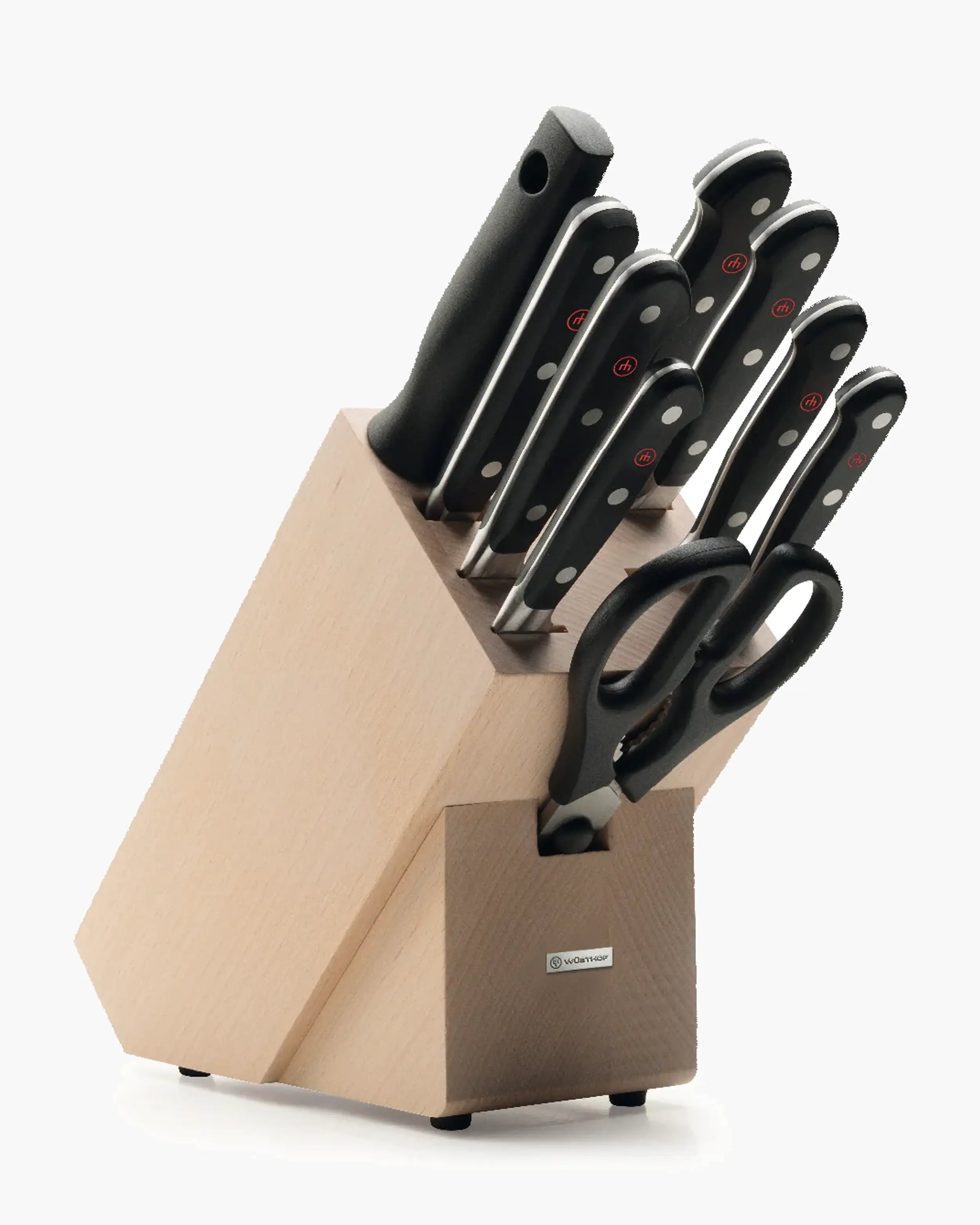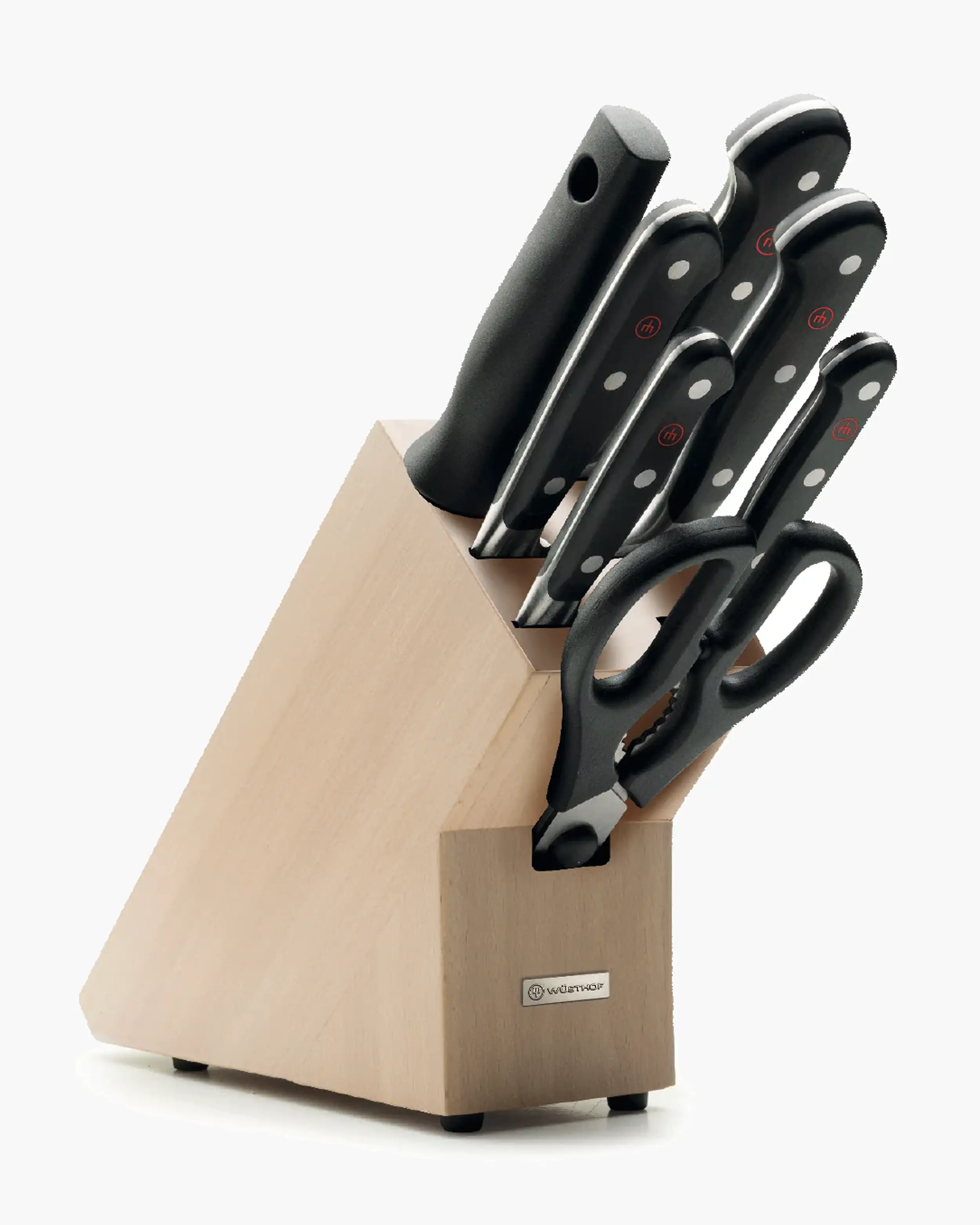 Das Wüsthof Classic Holzmesserblock-Set ist der Inbegriff alltäglicher Exzellenz. Entworfen von Wüsthof und stolz Teil der Knives & Co Kollektion, bringt diese unverzichtbare Kollektion aus der legendären Wüsthof Classic Kollektion Präzision, Balance und Zuverlässigkeit in Ihre Küche – in einer kompakten und eleganten Lösung.