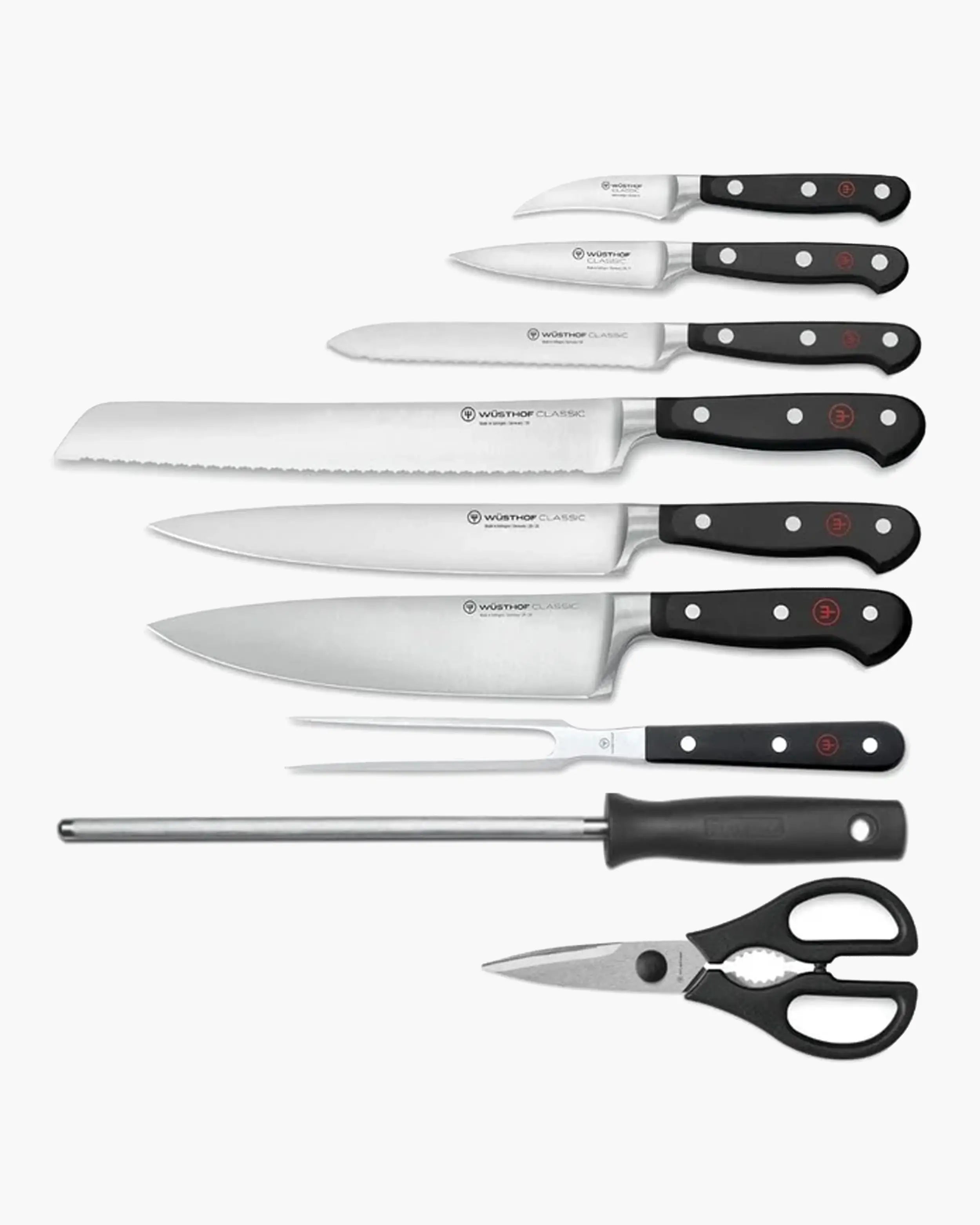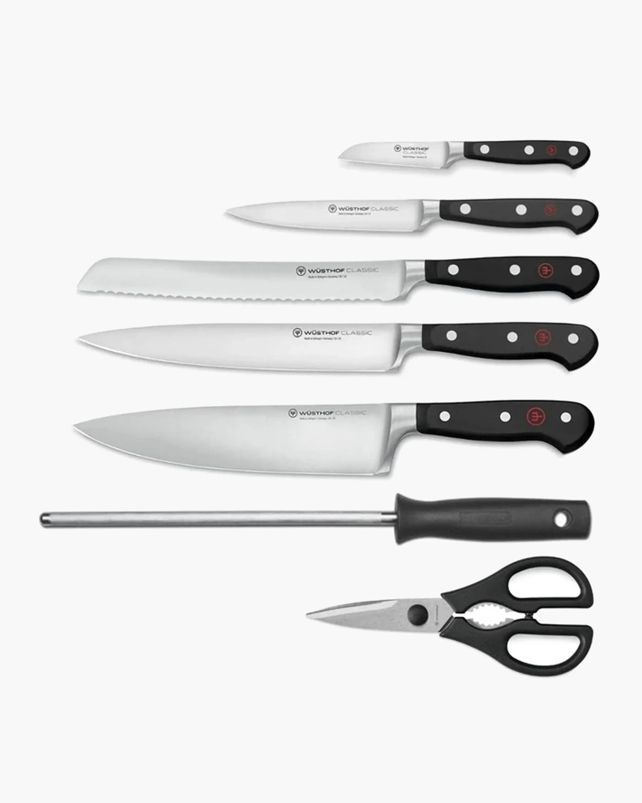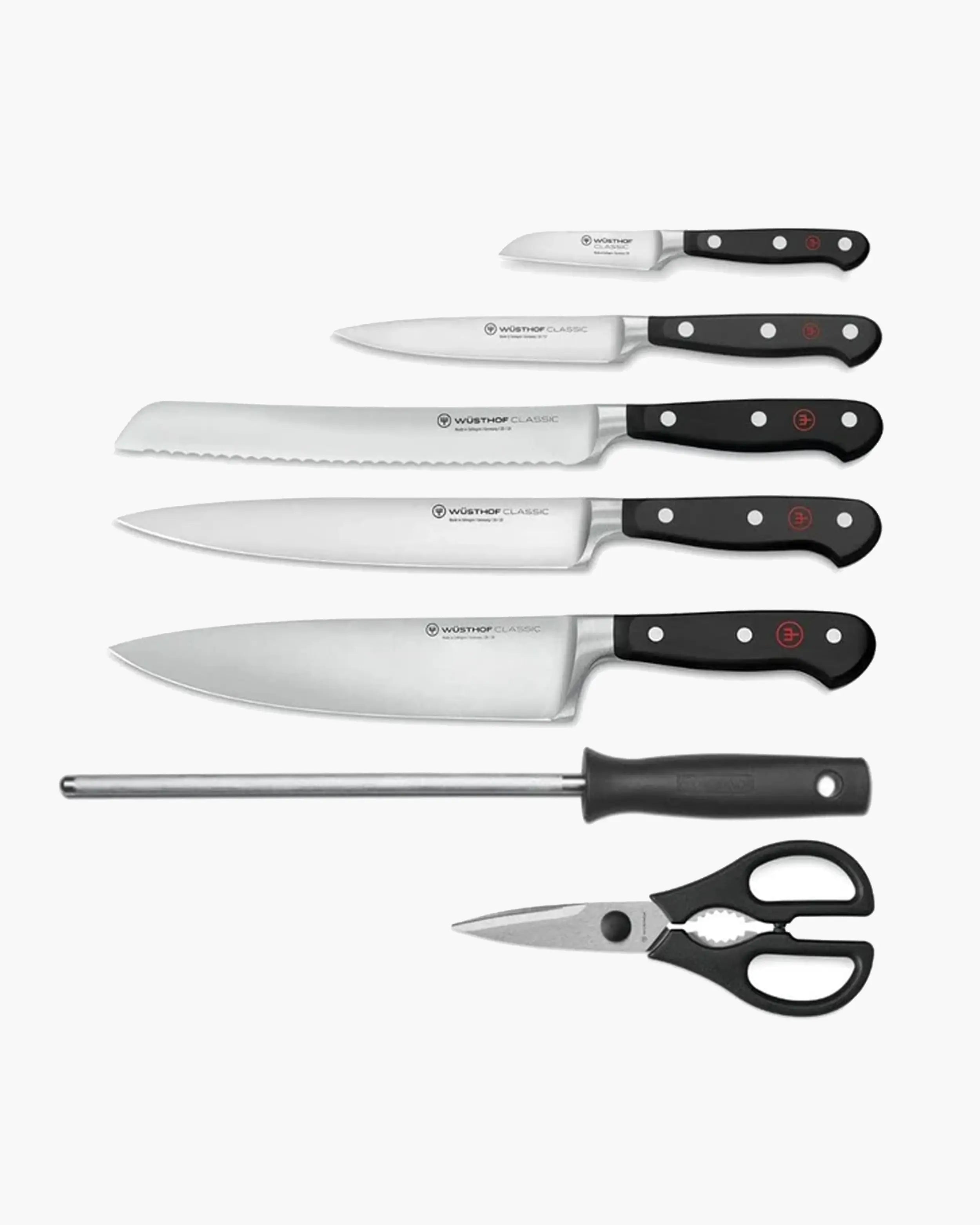 Das Wüsthof Classic Holzmesserblock-Set ist der Inbegriff alltäglicher Exzellenz. Entworfen von Wüsthof und stolz Teil der Knives & Co Kollektion, bringt diese unverzichtbare Kollektion aus der legendären Wüsthof Classic Kollektion Präzision, Balance und Zuverlässigkeit in Ihre Küche – in einer kompakten und eleganten Lösung.