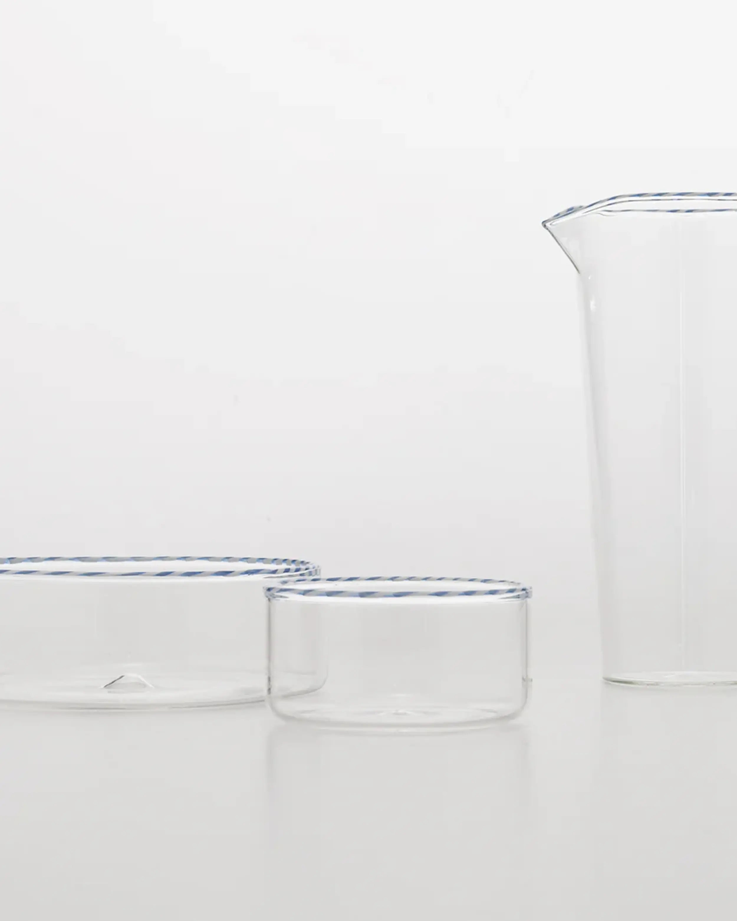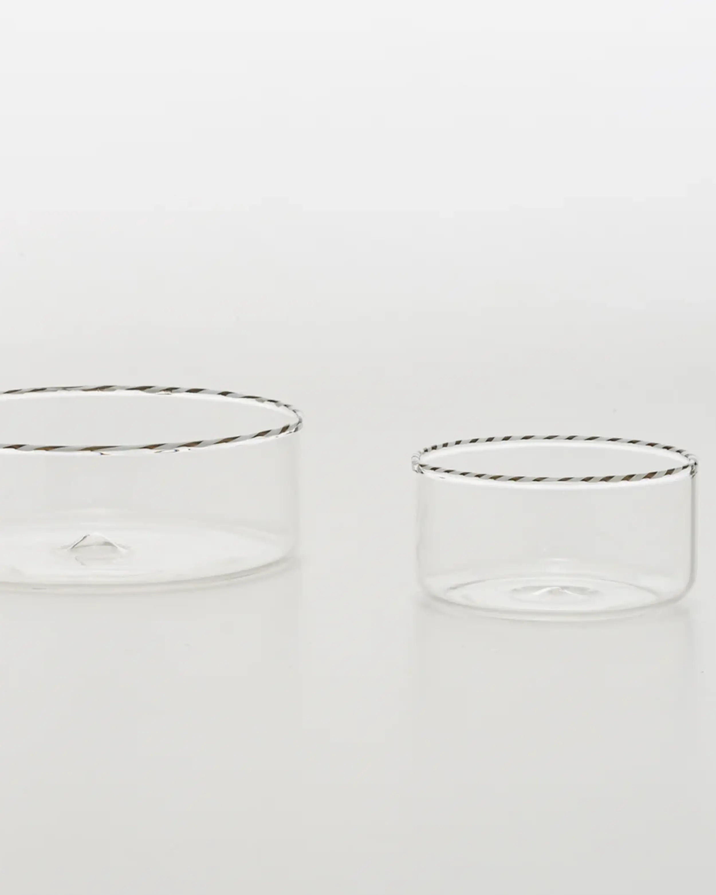 Jede Schüssel wird sorgfältig aus blasiertem Borosilikatglas gefertigt, was eine leichte und dennoch langlebige Konstruktion gewährleistet. Das handgefertigte Design bietet eine einzigartige Textur und Klarheit, während seine Wärmeschockbeständigkeit es ermöglicht, sowohl heiße als auch kalte Speisen mühelos zu bewältigen.
