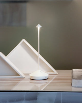 Ob Sie Beleuchtung für Innen- oder Außenbereiche benötigen, bietet die Zafferano Lampe Pina eine perfekte Kombination aus Tragbarkeit und Design. Als Teil der Premium-Zafferano Tischlampen-Kollektion ist diese schlanke, wiederaufladbare Lampe darauf ausgelegt, sich an verschiedene Umgebungen anzupassen. Das Aluminiumgehäuse, kombiniert mit einem Polycarbonat-Diffusor, sorgt für Langlebigkeit und bewahrt gleichzeitig ein anspruchsvolles Aussehen. Entworfen vom angesehenen Designer Federico De Majo, vereint die Zafferano Lampes à Porter Pina Pro Tischlampe moderne Ästhetik und praktische Funktionalität für ein nahtloses Beleuchtungserlebnis.