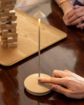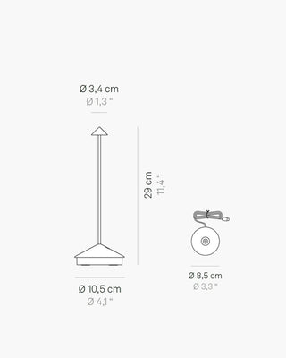Die wiederaufladbare Lampe liefert bei voller Ladung bis zu 13 Stunden Licht und sorgt dafür, dass sie lange Abende oder längere Nutzung übersteht. Das Aufladen dauert etwa 6 Stunden, und die Lampe verfügt über eine praktische Kontaktladestation für ein unkompliziertes Aufladen. Zusätzliche Zubehörteile, wie eine Mehrfach-Kontaktladestation und ein USB-Mehrfachstecker-Ladegerät, machen die Zafferano Pina Tischlampe zu einer äußerst bequemen und praktischen Wahl für jede Umgebung, ob drinnen oder draußen.