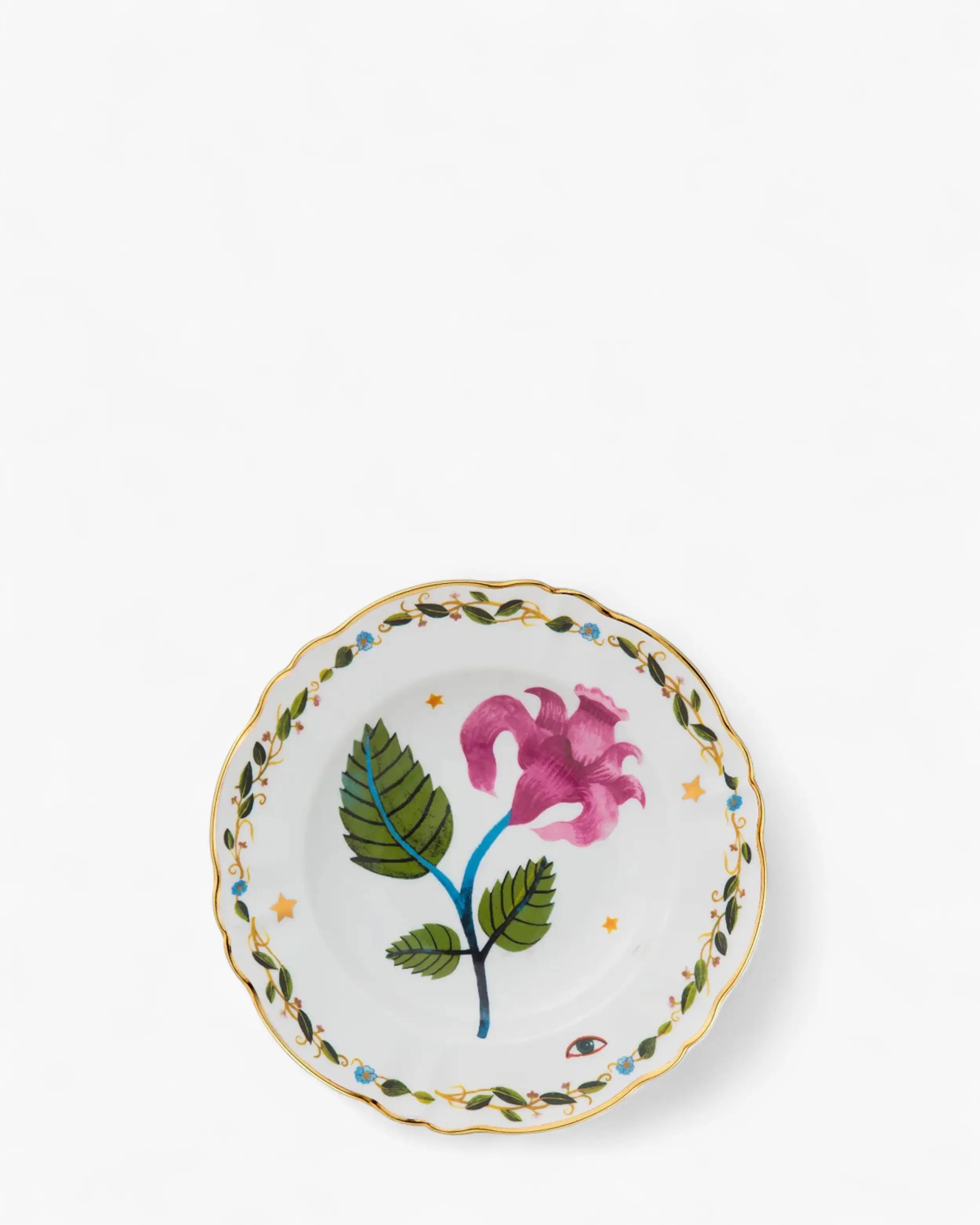 Crafted from premium porcelain, this fine porcelain plate reflects the excellence of Italian artistry. The gilded edge frames the design with a subtle shimmer, enhancing the tactile quality of the glaze. Light and durable, it embodies the union of elegance and practicality that defines Bitossi Home. To maintain its delicate finish, hand wash only is recommended, ensuring the preservation of its gold-edged decals over time. Not suitable for microwave use, it remains a timeless collectible for those who appreciate refined craftsmanship.