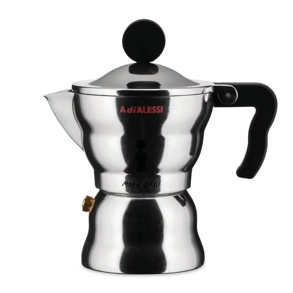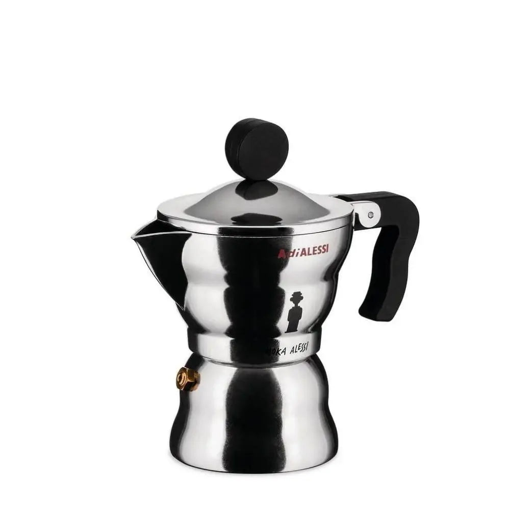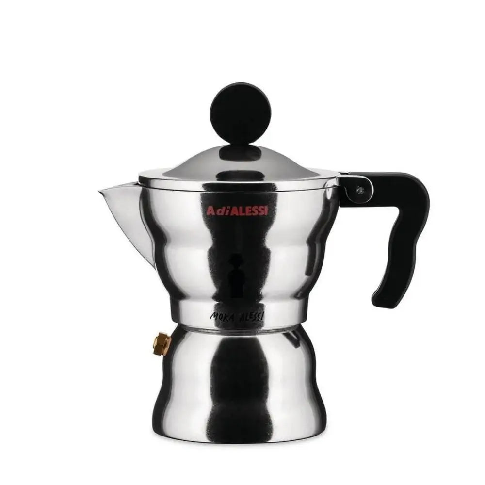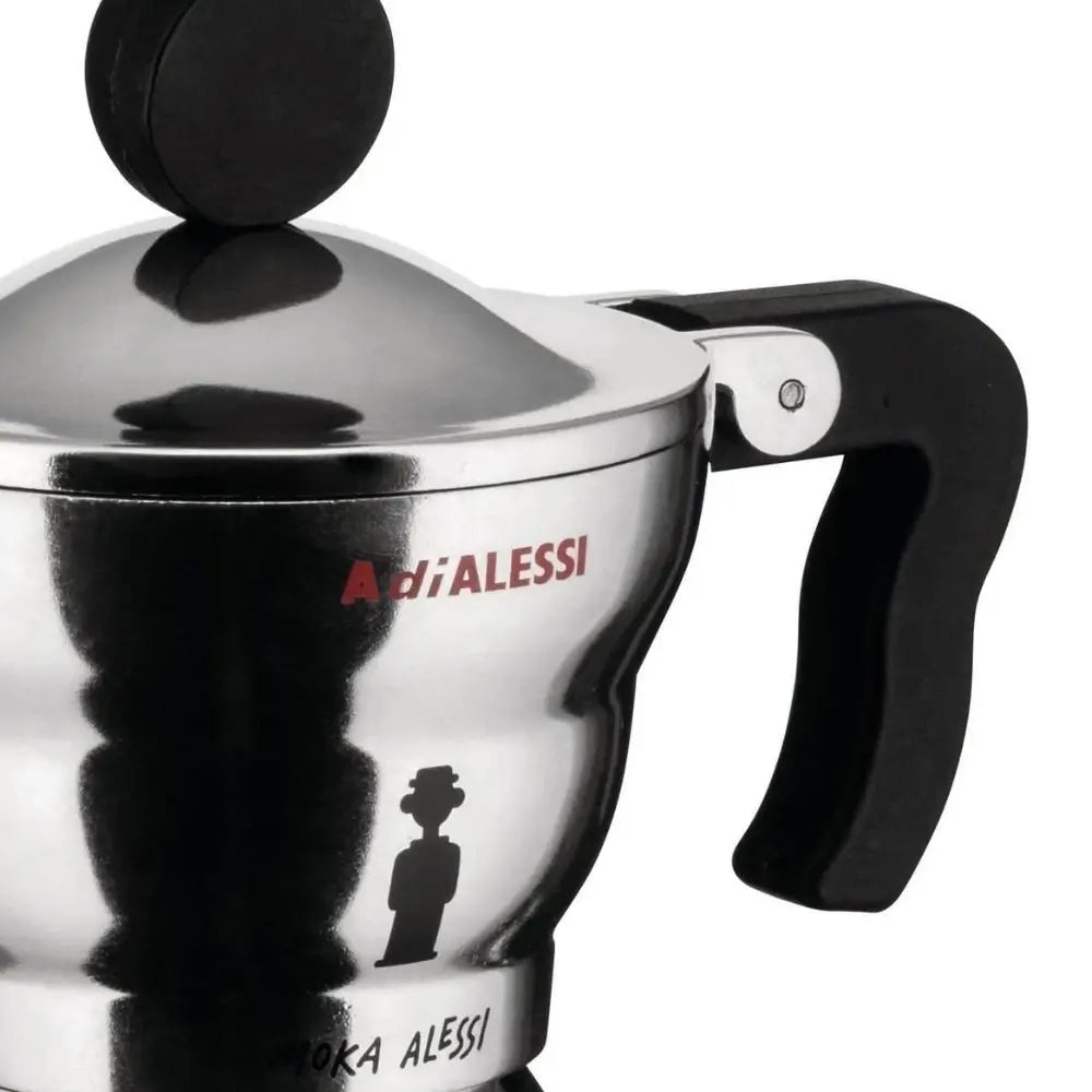 Σχεδιασμένη από τον οραματιστή Alessandro Mendini, αυτή η καφετιέρα αποτίει φόρο τιμής στο πρωτότυπο του Alfonso Bialetti του 1933 με μαλακές γραμμές και μια απτική, γλυπτική μορφή. Το αλουμινένιο σώμα της και η μαύρη θερμοπλαστική λαβή της είναι αρμονικά ενσωματωμένα, εκφράζοντας το πάθος του Mendini για τη σύντηξη λειτουργικότητας με το συναίσθημα. Ένα εκλεπτυσμένο κομμάτι στην κατηγορία Alessi Coffee pots, φέρνει ζεστασιά και τέχνη στην απλή πράξη της παρασκευής εσπρέσο.