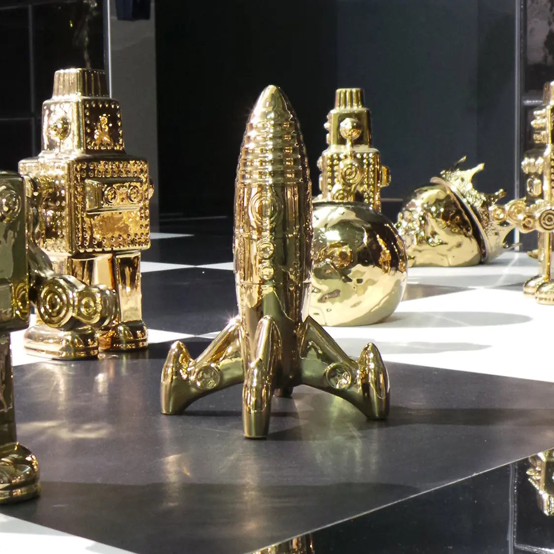 Το Memorabilia My Spaceship γεφυρώνει το παρελθόν και το μέλλον, όπου η υλική παράδοση συναντά τη φουτουριστική ιδέα. Ο Zambelli επανασχεδιάζει το παιδικό παιχνίδι ως ένα καλλιτεχνικό πορσελάνινο γλυπτό που λειτουργεί τόσο ως δημιουργικό διακοσμητικό σπιτιού όσο και ως κομμάτι δήλωσης για συλλέκτες. Η παρουσία του ζωντανεύει κάθε χώρο, από μοντέρνα σαλόνια μέχρι εκλεκτικά στούντιο, ενώ αντανακλά τη φιλοσοφία της Seletti να μετατρέπει καθημερινά αντικείμενα σε αφηγηματικές μορφές. Η κατοχή του Seletti Memorabilia My Spaceship σημαίνει γιορτή της περιέργειας, της εξερεύνησης και του ποιητικού πνεύματος του παιχνιδιού. Ιδανικό για συλλέκτες που επιθυμούν να αγοράσουν διακοσμητικά Seletti online, η τιμή Seletti Memorabilia αντανακλά την τεχνική δεξιοτεχνία, την φανταστική ιδέα και τη διαχρονική γοητεία του γλυπτού, προσφέροντας ένα σύγχρονο συλλεκτικό αντικείμενο που μετατρέπει τα παιδικά όνειρα σε απτή, κομψή πραγματικότητα, μια απόδειξη της διαρκούς δύναμης της δημιουργικότητας και της αφήγησης στο σχεδιασμό.Seletti Αναμνηστικό Το Διαστημόπλοιό Μου με πορσελάνινη διακόσμηση
