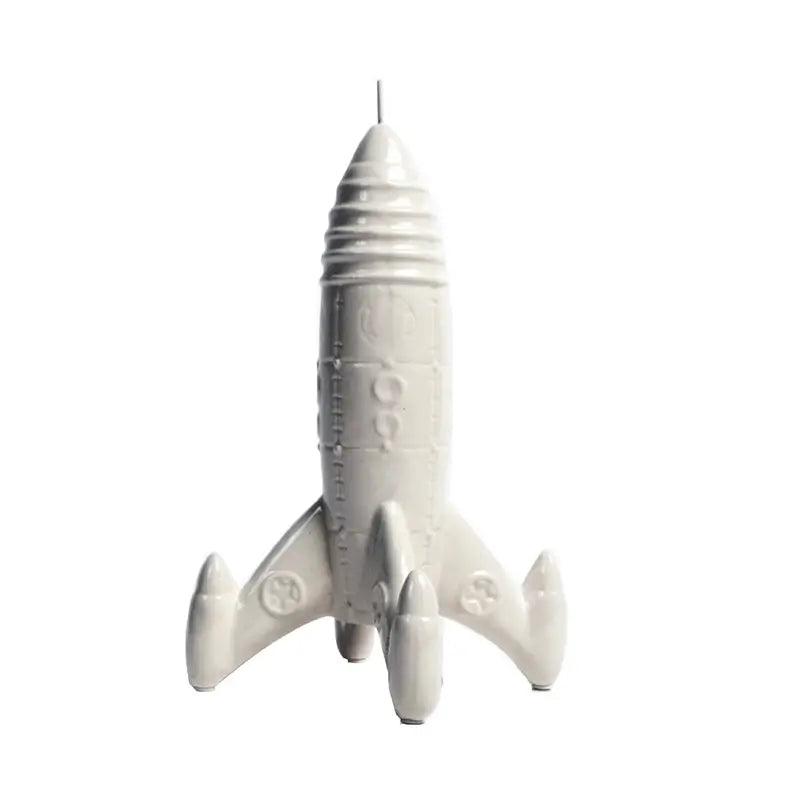 Το Seletti Memorabilia My Spaceship γιορτάζει την ανθρώπινη ευφυΐα και τη διαρκή γοητεία με το σύμπαν. Στη συλλογή Alessandro Zambelli για Seletti, αυτό το μοντέρνο σουρεαλιστικό αντικείμενο Seletti ενσαρκώνει τόσο το παιχνιδιάρικο πνεύμα όσο και τη σοφιστικέ διάθεση, αποτυπώνοντας την ευαίσθητη ισορροπία ανάμεσα στην παιδική αθωότητα και την εννοιολογική τέχνη. Η μινιμαλιστική του σιλουέτα και η επιμελής λεπτομέρεια αντανακλούν τον ενθουσιασμό της εξερεύνησης, ενώ το διπλό λευκό και χρυσό φινίρισμα προκαλεί αίσθηση καθαρότητας, θριάμβου και τον αιώνιο διάλογο ανάμεσα στην επιθυμία και την πραγματικότητα. Μέρος της συλλογής Seletti Objects, το διαστημόπλοιο μετατρέπει τη νοσταλγική μνήμη σε ένα σύγχρονο αντικείμενο, ένα γλυπτό πλούσιο σε αφήγηση που εμπλέκει τους θεατές διανοητικά και συναισθηματικά. Κάθε καμπύλη, κάθε γυαλιστερή επιφάνεια, μαρτυρά τη δέσμευση της Seletti στην τεχνική, μετατρέποντας μια απλή ιδέα σε απτή έκφραση φαντασίας και καλλιτεχνικής όρασης.Η ποίηση ενός σύγχρονου κειμηλίου