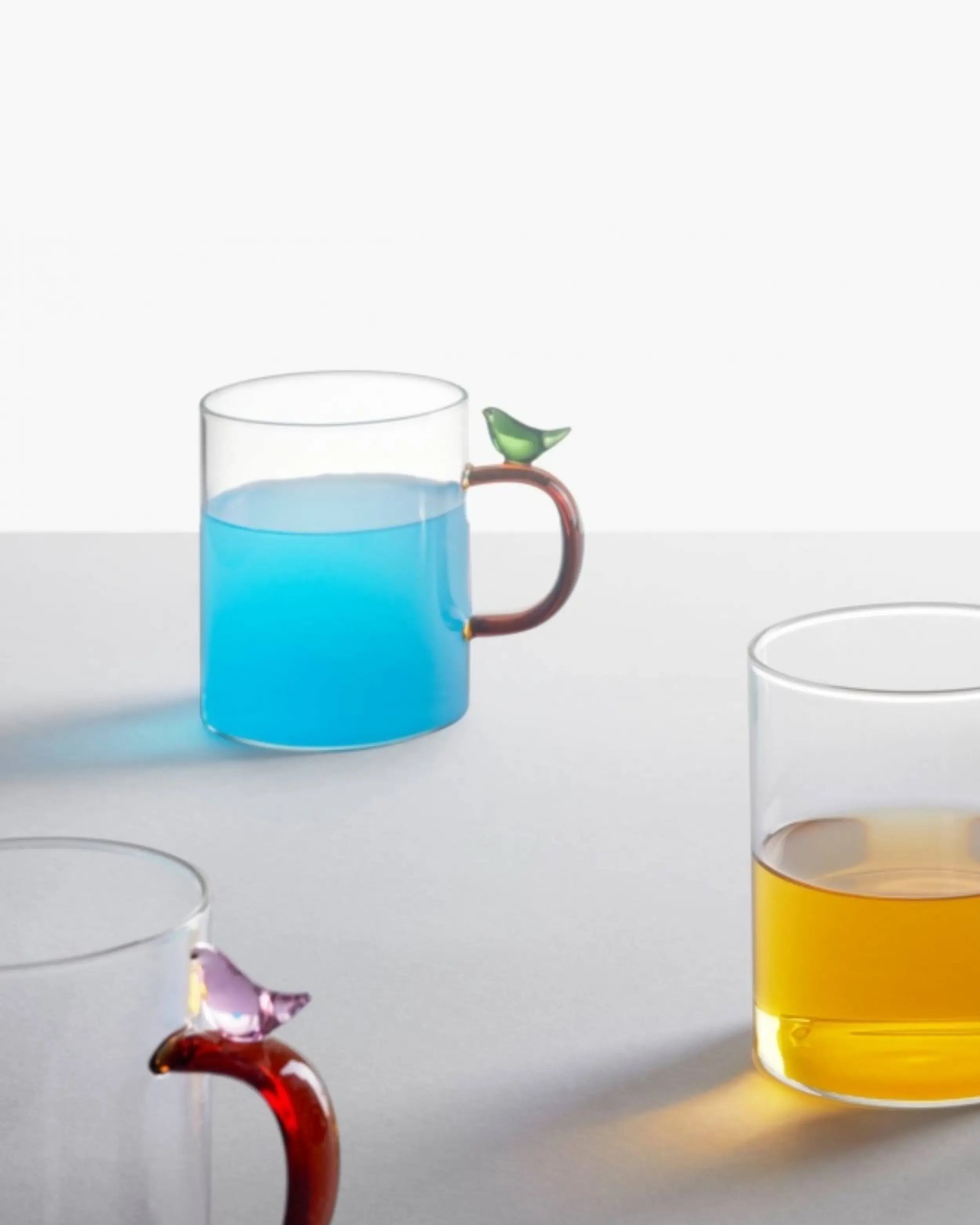 There is a gentle poetry in the Ichendorf Birds mug bird, a cup that seems to welcome the first light of the day. Its clear glass glows as it catches the sun, while a tiny coloured bird rests delicately on the rim. Each sip becomes a small moment of calm, where design and emotion meet in the rhythm of everyday rituals.