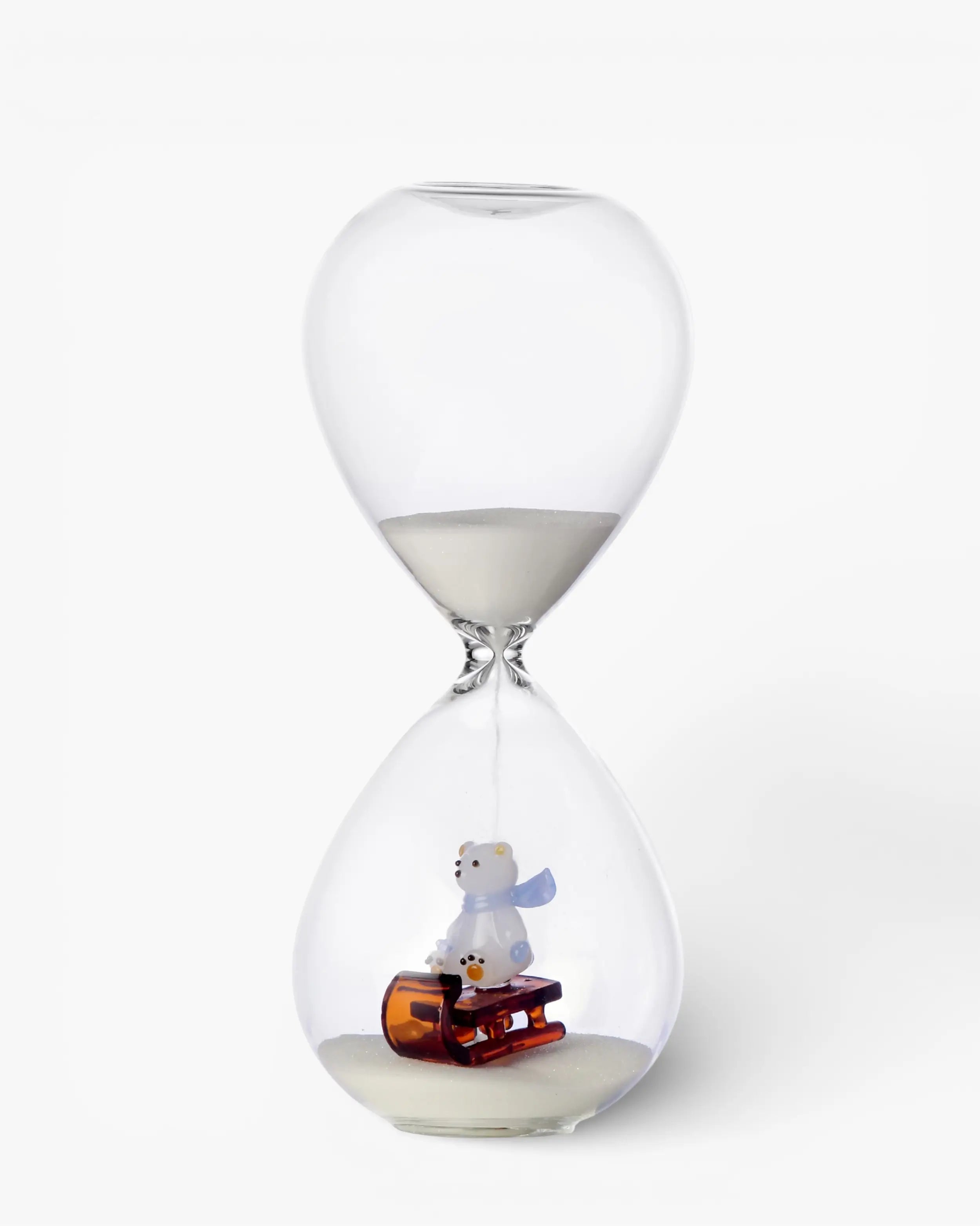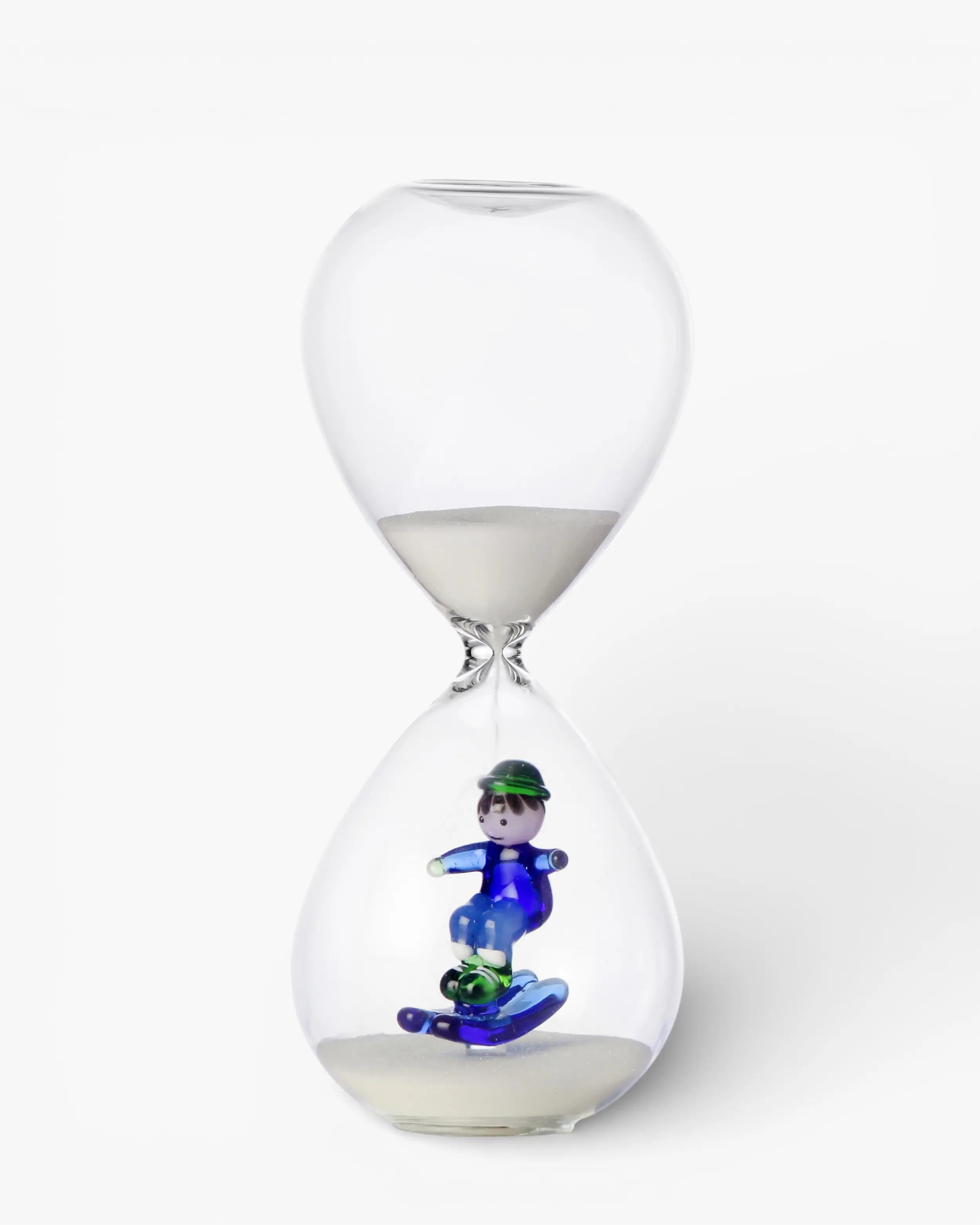 Designed primarily as a decorative element, this handmade borosilicate glass hourglass adds character to shelves, desks, and curated interiors. Its lightness and transparency allow it to interact subtly with surrounding light, making it an elegant accent within both residential and hospitality spaces. Whether styled as a skiing themed hourglass or appreciated as a sledding themed hourglass, it introduces a sense of calm movement and visual balance into contemporary décor.