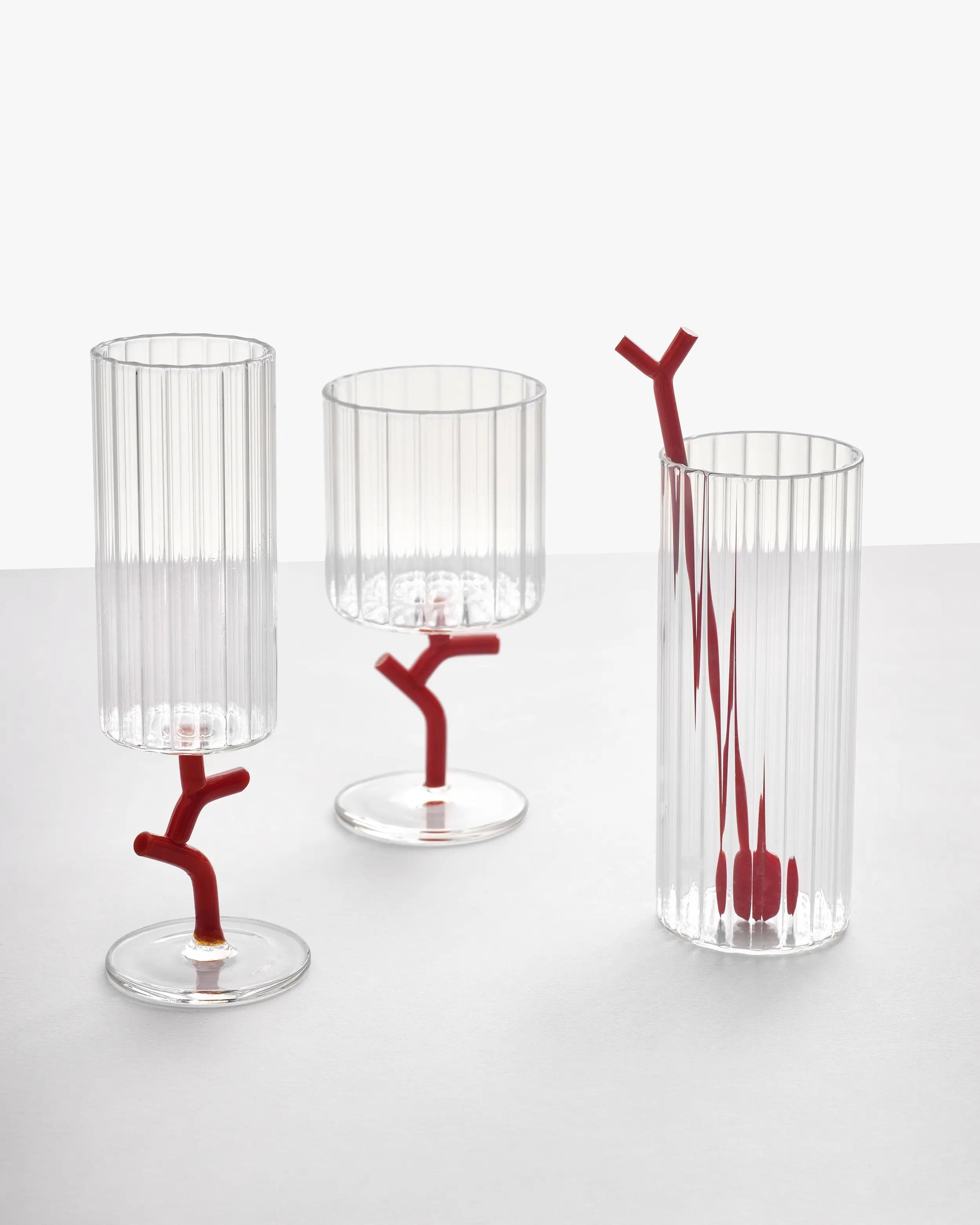 Each Amaranta flute is handmade and lampworked in borosilicate glass, chosen for its clarity, resistance, and feather-light feel. The refined transparency reveals the sparkle of champagne or sparkling wine, turning every sip into a visual pleasure. Designed for alimentary use, it safeguards the purity of taste while remaining easy to care for, dishwasher safe at low temperatures (40 °C/104 °F recommended) to preserve brilliance and form. Available in two stem colours, clear and amaranth, it invites a play of tones when paired together, creating elegant compositions across different tablescapes.