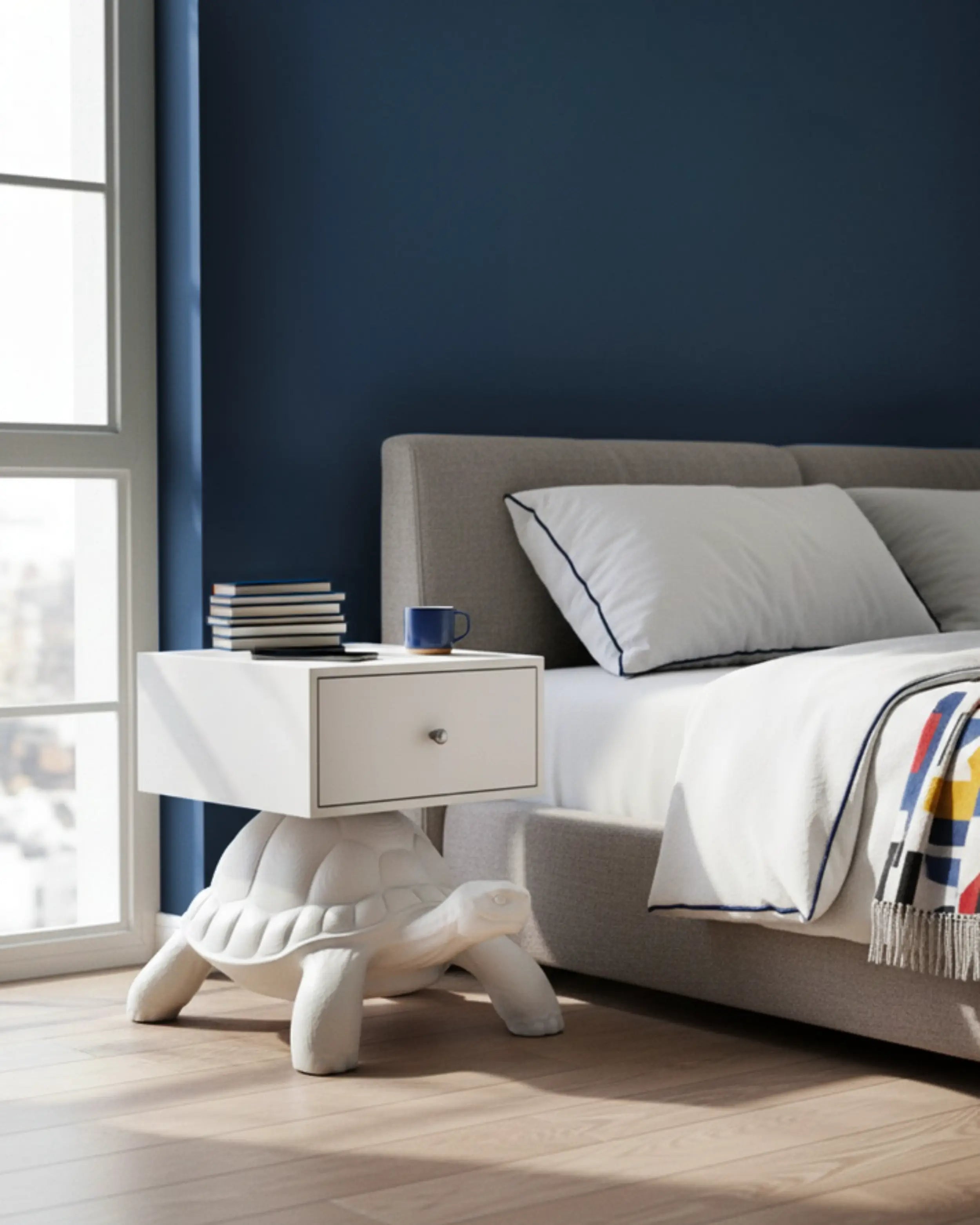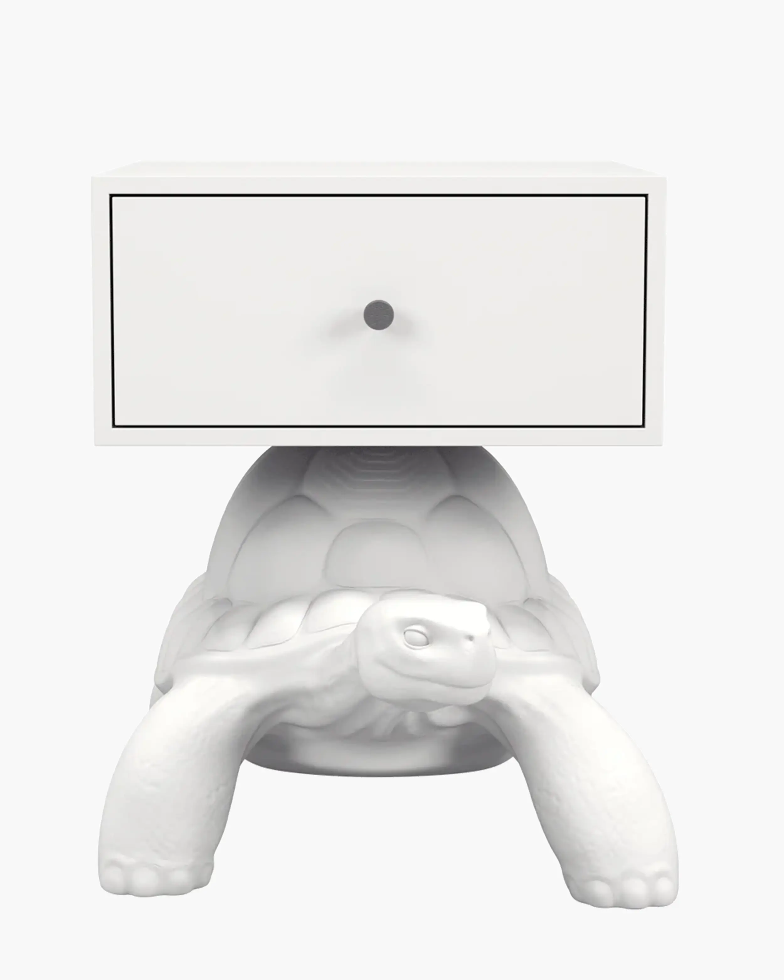 Διακριτική σιλουέτα, πολυλειτουργικό πνεύμα και υλικό κατάλληλο για τη σύγχρονη ζωή κάνουν αυτή τη χελώνα έναν διαχρονικό σύντροφο. Είναι ένα παιχνιδιάρικο έπιπλο υπνοδωματίου που λειτουργεί και ως αξιόπιστη στήριξη, επιβεβαιώνοντας την αποστολή του Qeeboo να συνδυάζει τη φαντασία με την πρακτικότητα. Από τη φιλική της μορφή μέχρι το κρυφό συρτάρι, το Qeeboo Turtle Carry bedside table είναι ταυτόχρονα γλυπτό και λειτουργικό, αναμφισβήτητα Qeeboo.