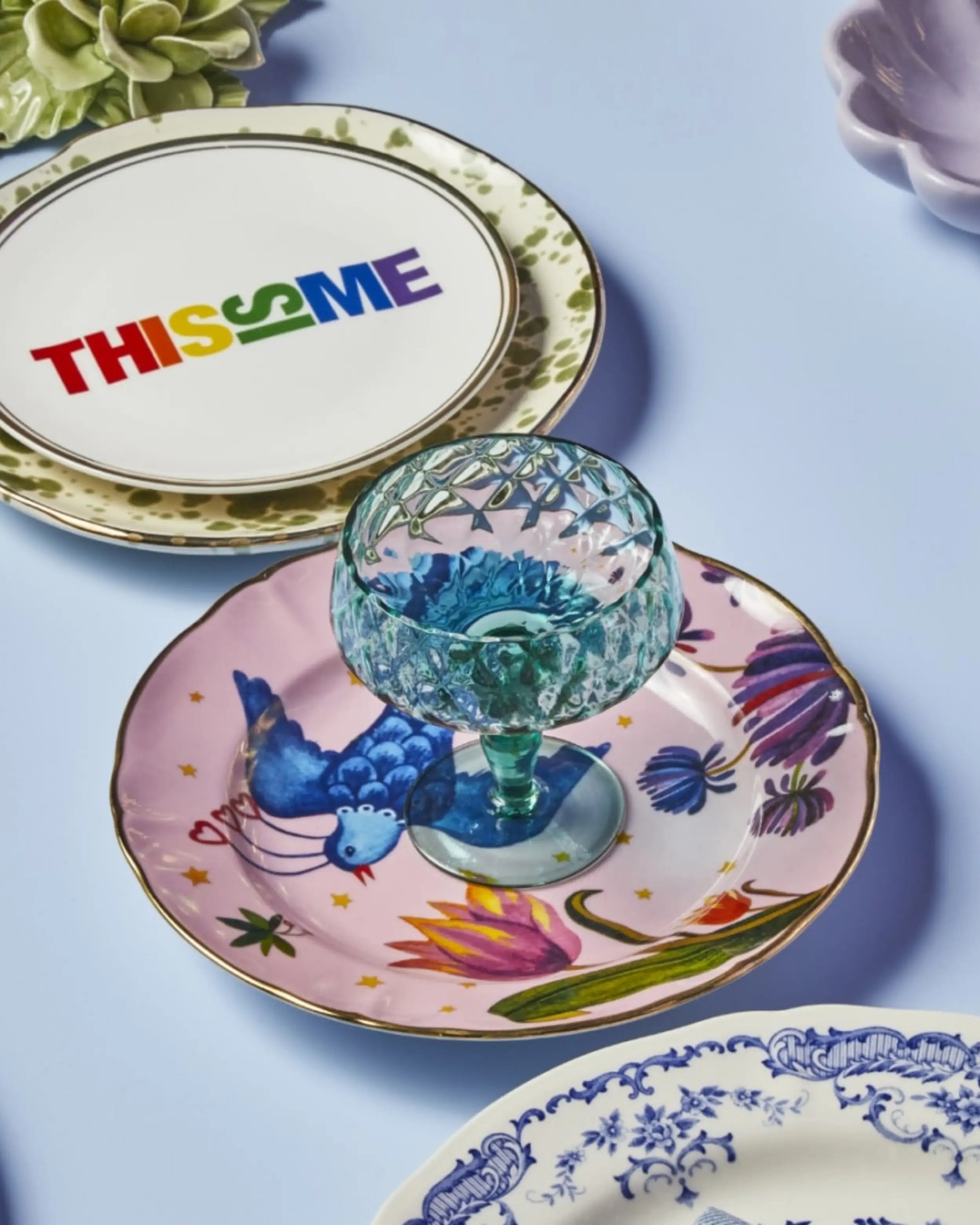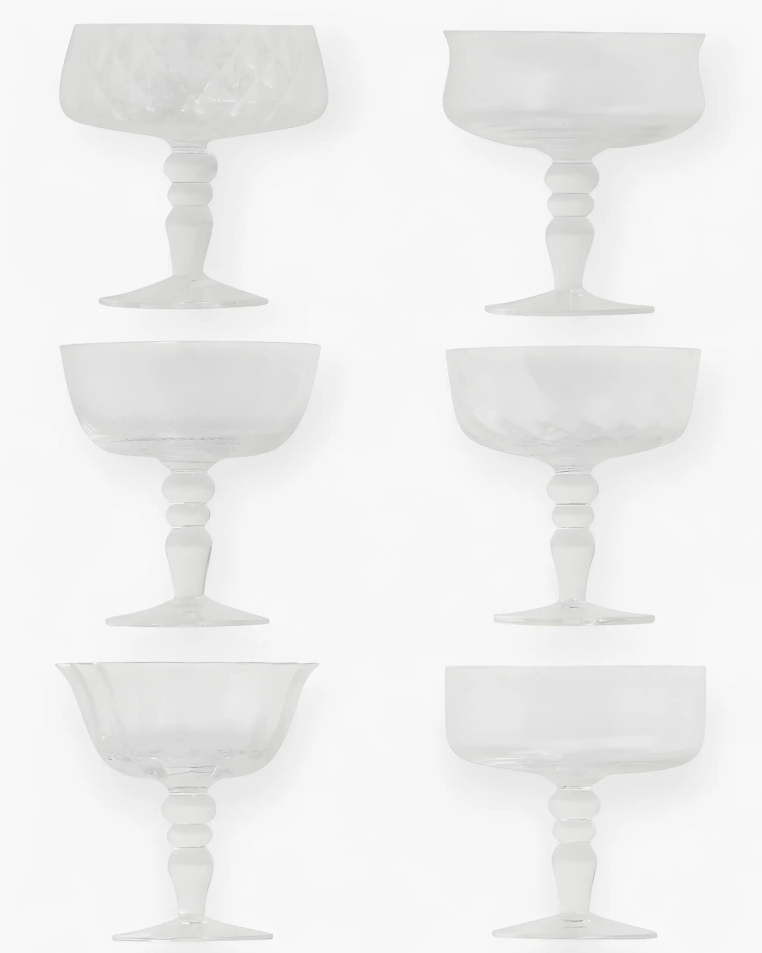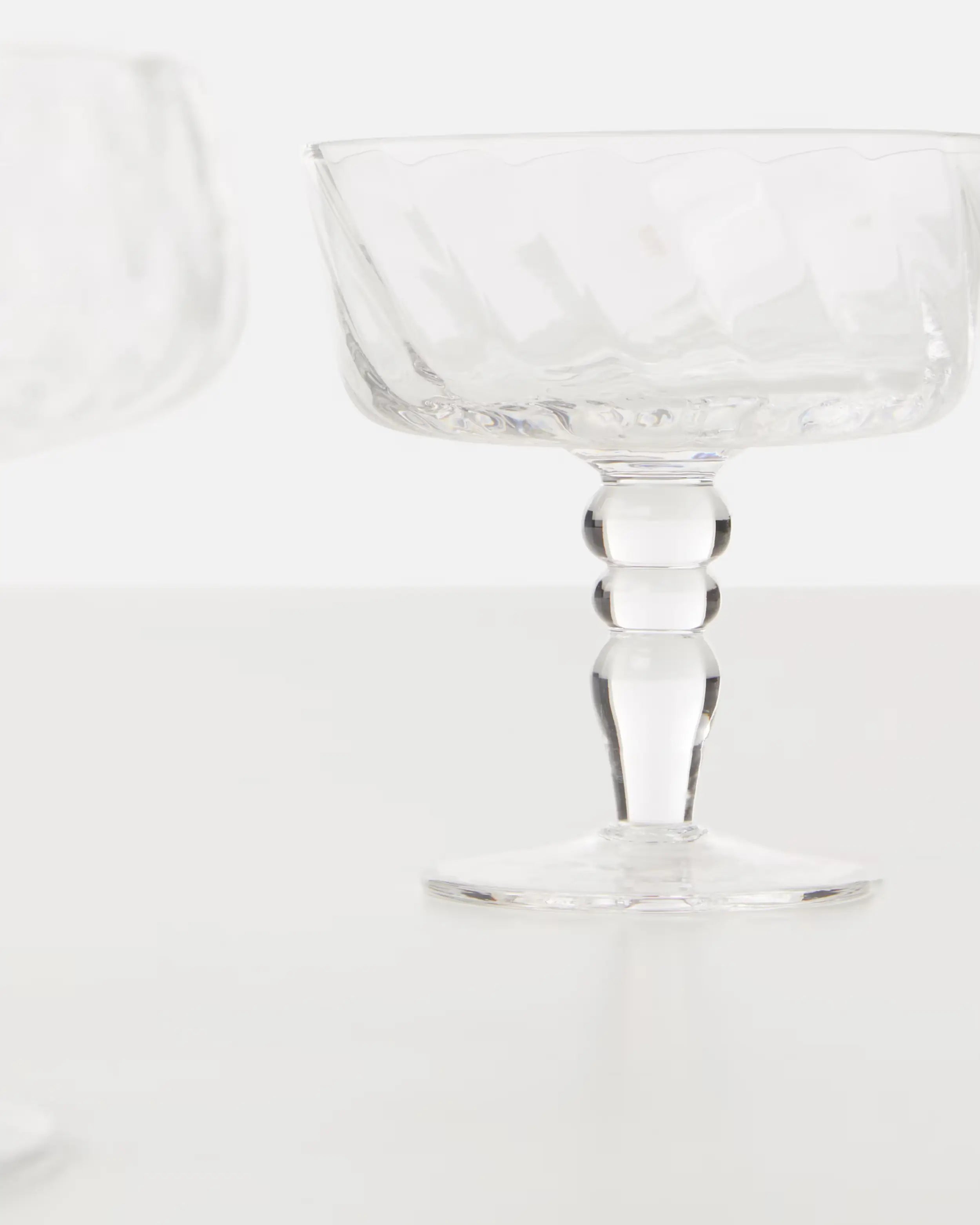 These champagne bowls reinterpret classic Italian glassmaking through a contemporary lens. The hand-blown glass reveals slight irregularities that become part of its beauty, while the textured surface reflects the joyful philosophy of Bitossi Home Design. Their delicate structure and sculptural curves bring a sense of lightness and celebration to any occasion, pairing effortlessly with the creative mix-and-match approach of the La Tavola Scomposta collection.