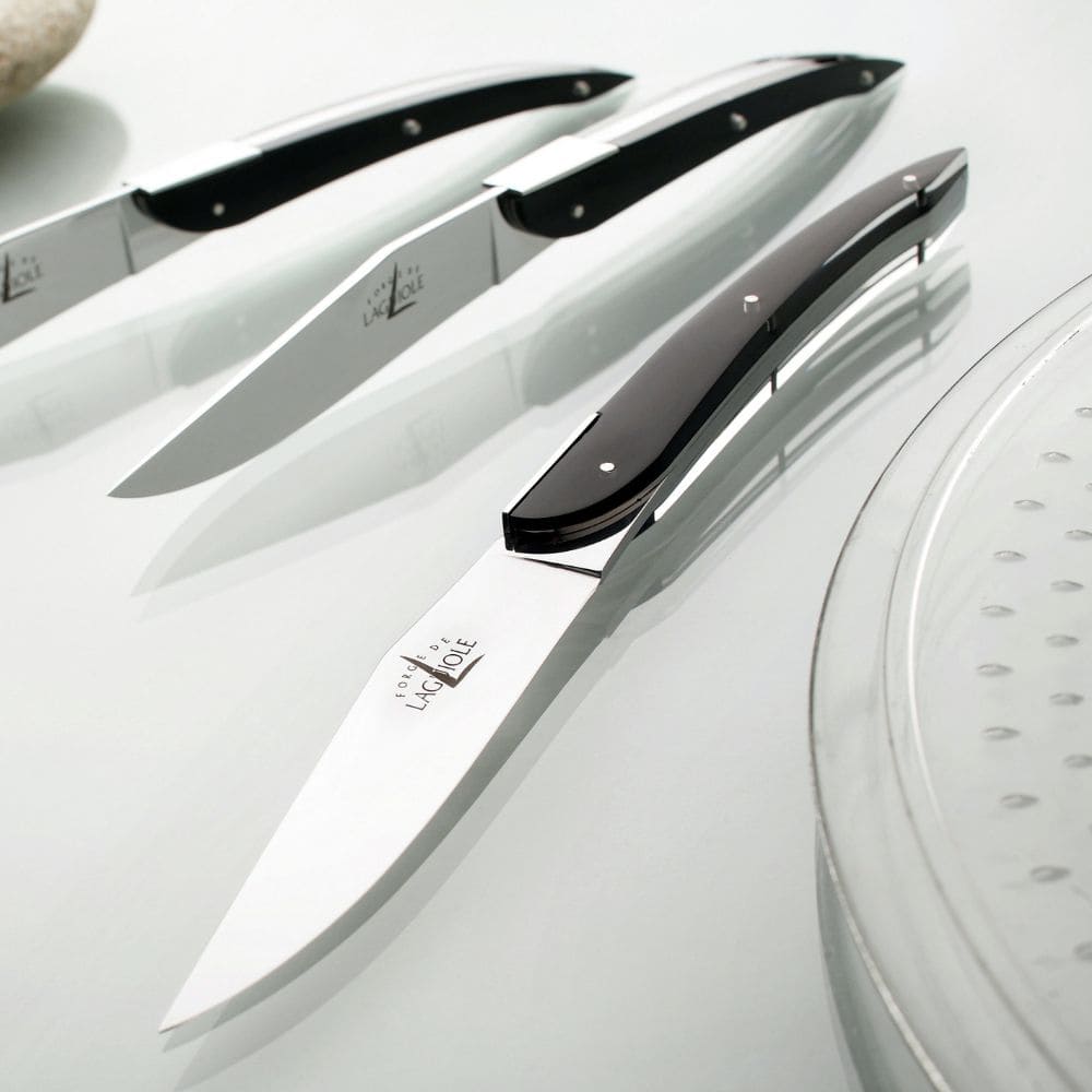 Ανακαλύψτε τα εξαιρετικά επιτραπέζια μαχαίρια του Eric Raffy με ακρυλική λαβή. Τέλειος συνδυασμός μοντέρνου σχεδιασμού και παραδοσιακής χειροτεχνίας.