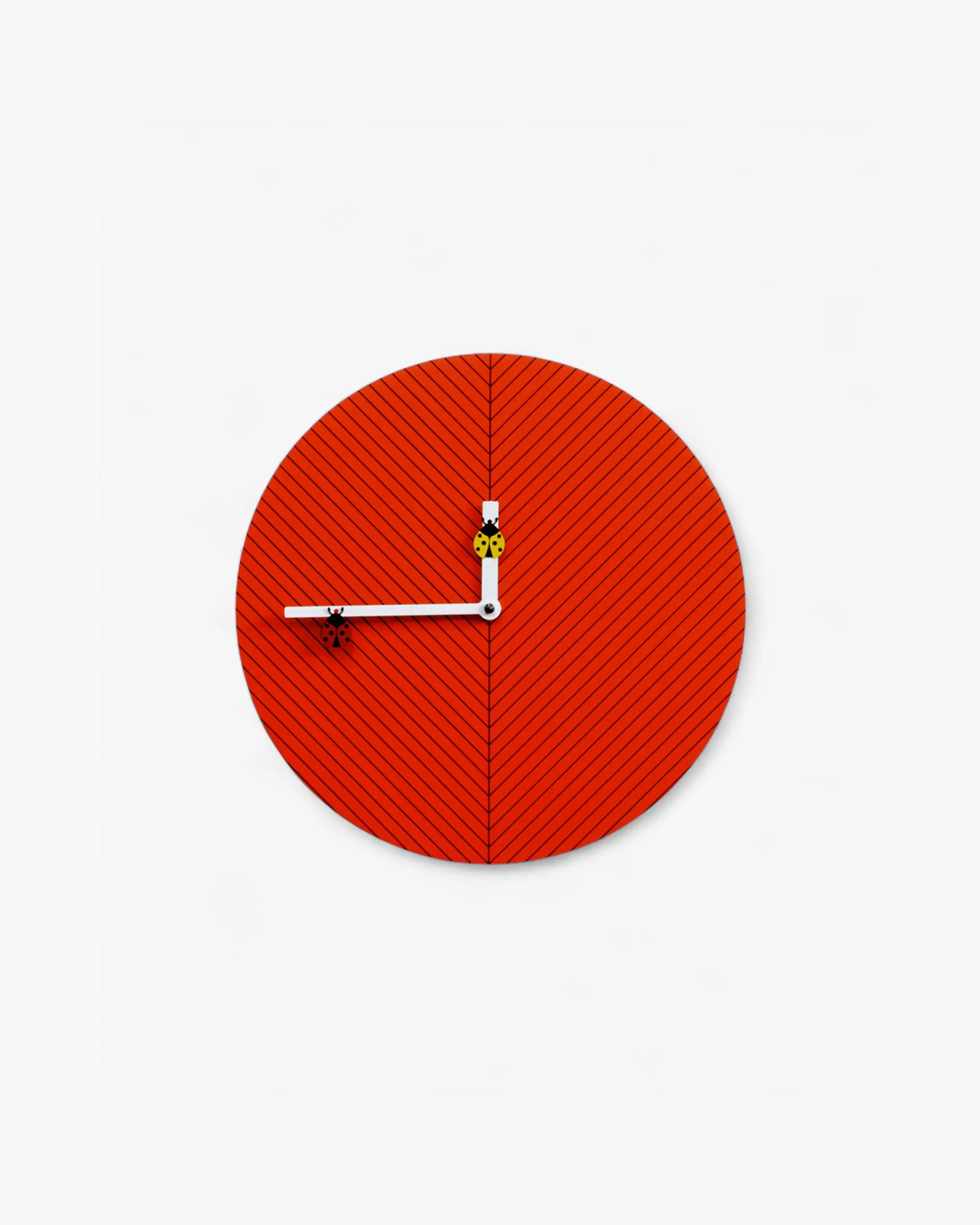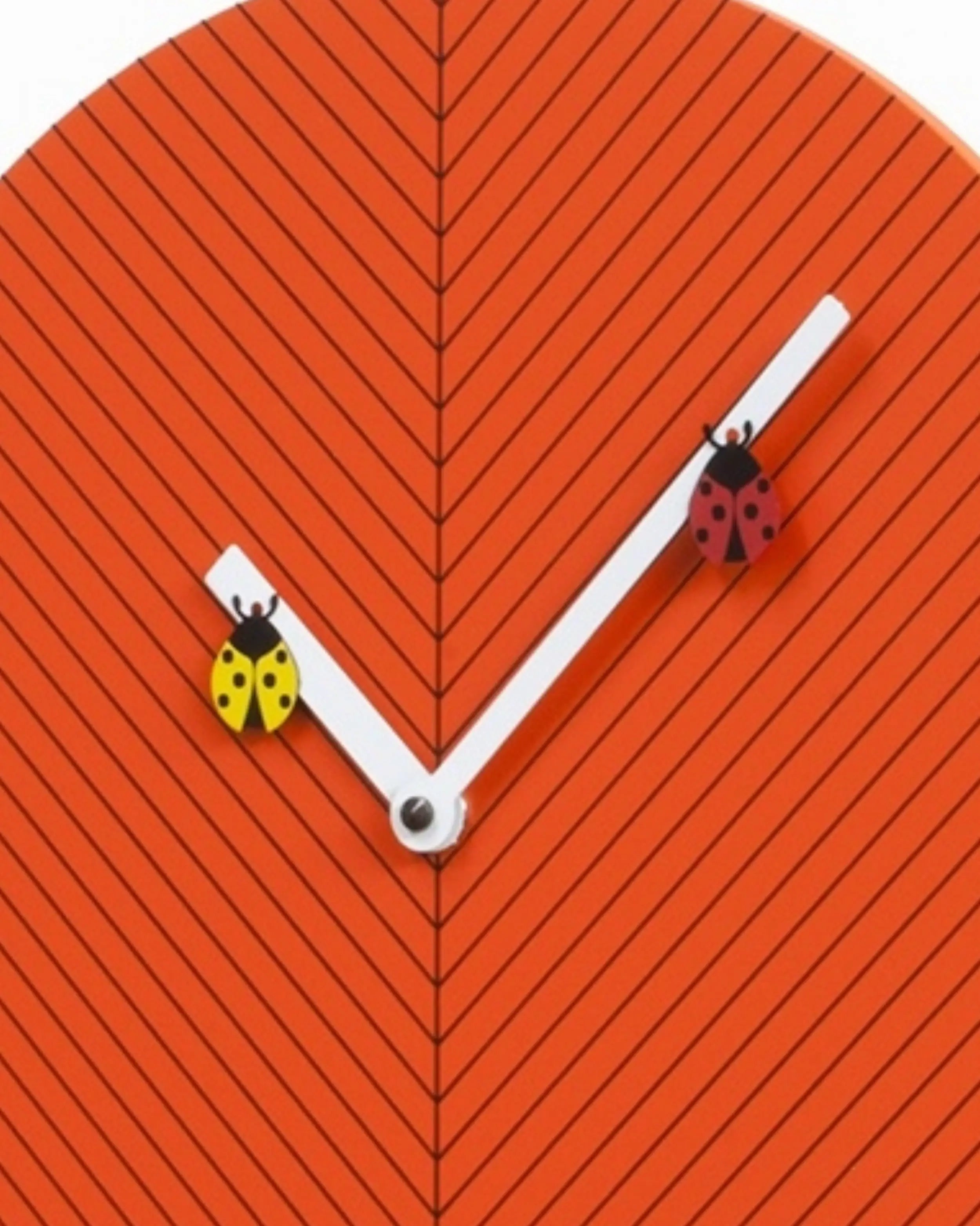 Το ξύλινο καντράν είναι διακοσμημένο με ένα λεπτό δίκτυο μαύρων γραμμών, που θυμίζει τις ευαίσθητες φλέβες ενός φύλλου. Καθισμένες σε αυτόν τον γραφικό καμβά, δύο ζωντανές πασχαλίτσες—μία κόκκινη, μία κίτρινη—κινούνται με χάρη όπως τα δείκτες του ρολογιού. Το αποτέλεσμα είναι απαλό, παιχνιδιάρικο και γεμάτο χαρακτήρα, καθιστώντας το ρολόι Time2Bugs κάτι περισσότερο από έναν χρονομετρητή—είναι αφορμή για συζήτηση.Κατασκευασμένο για Ηρεμία και Γοητεία