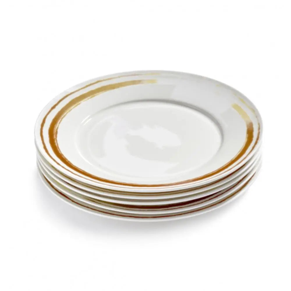 Τα ποικίλα σχεδιαστικά πιάτα δημιουργούν μια αρμονική σύνθεση όταν εκτίθενται μαζί, ενώ το καθένα ξεχωρίζει ατομικά για τον διακριτικό διακοσμητικό του χαρακτήρα. Ιδανικό για σύγχρονους εσωτερικούς χώρους, αυτό το σύγχρονο σετ σερβιρίσματος συμπληρώνει ουδέτερες παλέτες, εκλεπτυσμένα λινά και κομψά γυάλινα σκεύη. Η απαλή λάμψη του χρυσού ενισχύει την ατμόσφαιρα χωρίς επιδειξιμότητα, προσδίδοντας μια αίσθηση οικειότητας και διαχρονικότητας στην εμπειρία του δείπνου. Ιδανικό για συλλέκτες και λάτρεις του σχεδίου, αυτά τα πιάτα αναβαθμίζουν το συνηθισμένο σε εξαιρετικό.