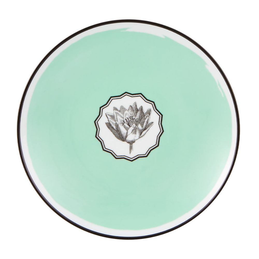 Πράσινο πιάτο γλυκού Herbariae, σχεδιασμένο από τον Christian Lacroix για Vista Alegre . Το πιάτο γλυκού Herbariae πράσινο, κομψά διακοσμημένο με λουλούδι και μαύρο περίγραμμα που δίνουν μια πινελιά μοναδικής κομψότητας χάρη στην αντίθεση των χρωμάτων, είναι το ιδανικό στοιχείο για να κάνετε το τραπέζι σας μοναδικό. Η συλλογή Herbariae εμπνέεται από πέντε λουλούδια (η παπαρούνα, ο νάρκισσος, ο λωτός, η ντάλια και το γαϊδουράγκαθο) και τα κάνει πρωταγωνιστές ολόκληρης της σειράς, αντιπροσωπεύοντάς τα με το στυλ των αρχαίων βοτάνων και συνδυάζοντάς τα με απαλά χρώματα, παραπέμποντας έτσι σε ένα εφέ ακουαρέλας. Ανακαλύψτε ολόκληρη τη συλλογή Herbariae και κάντε κάθε περίσταση μοναδική.