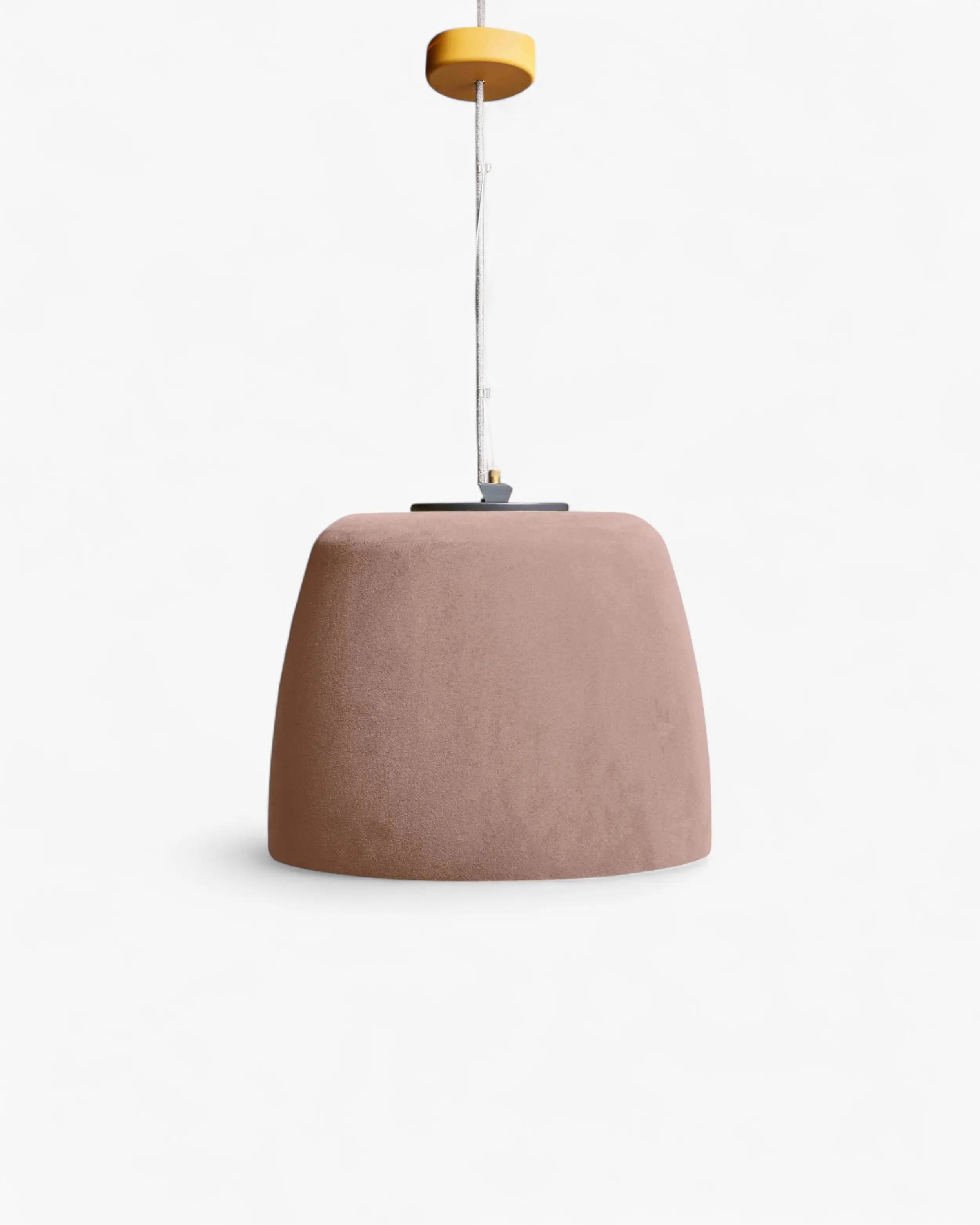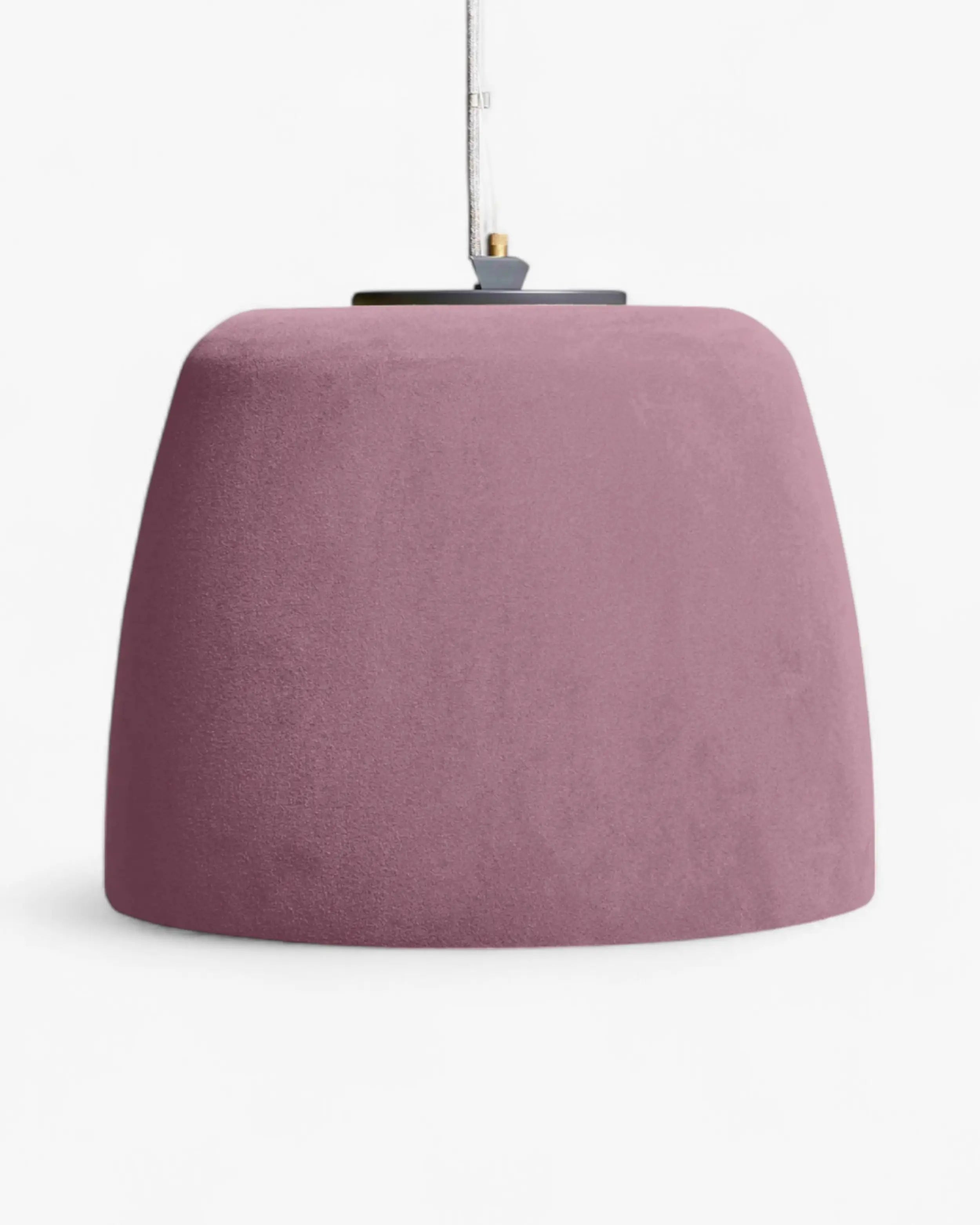 La edición de terciopelo viene en seis tonos refinados: gris, rosa, mediterráneo, lima, champán y uva. El gris enfatiza el rigor arquitectónico, el rosa suaviza el ambiente, el mediterráneo aporta frescura, la lima energiza, el champán irradia elegancia y la uva añade dramatismo. Estas variaciones permiten que Lindos actúe como una lámpara colgante contemporánea adaptable a salones, terrazas o interiores minimalistas.
