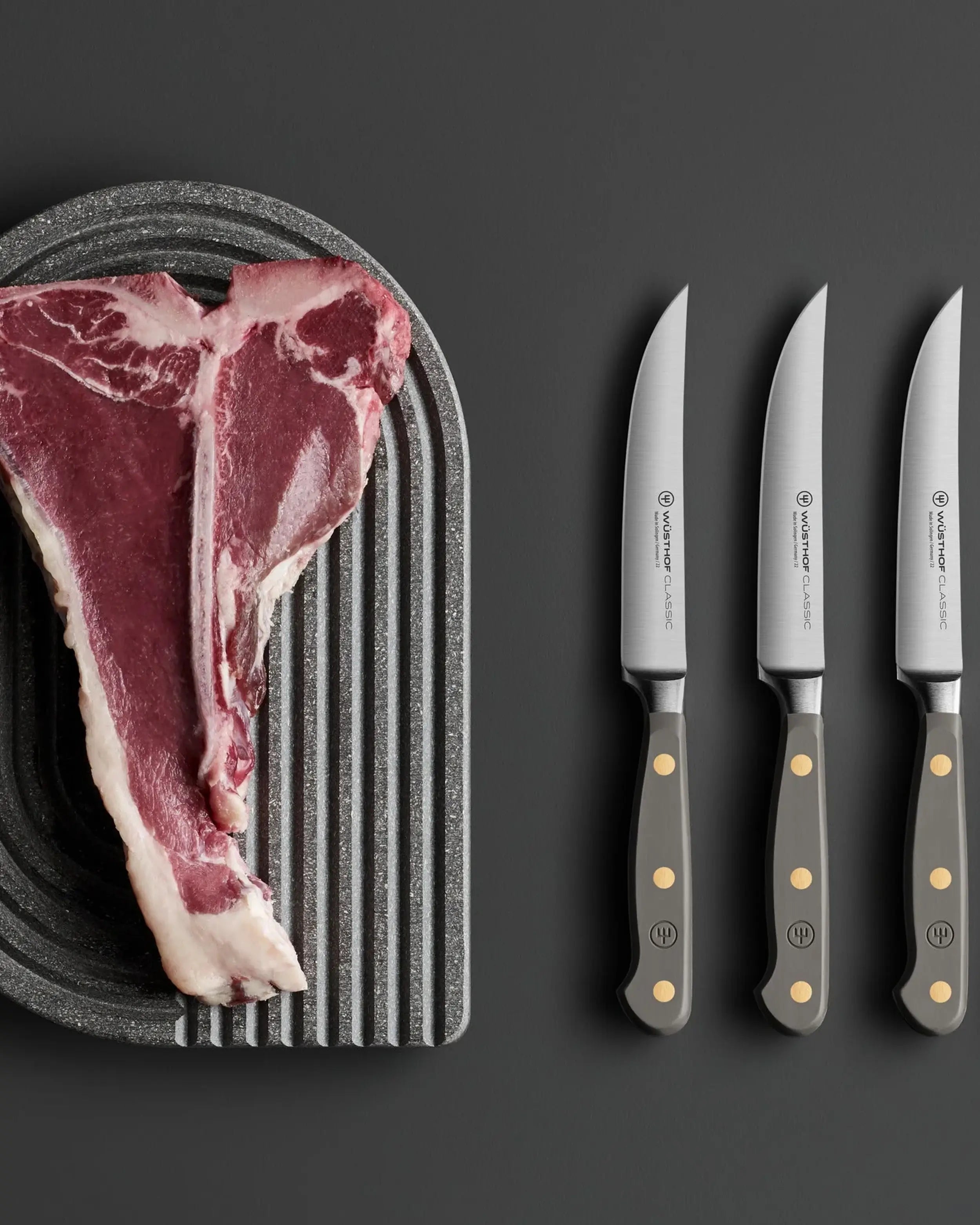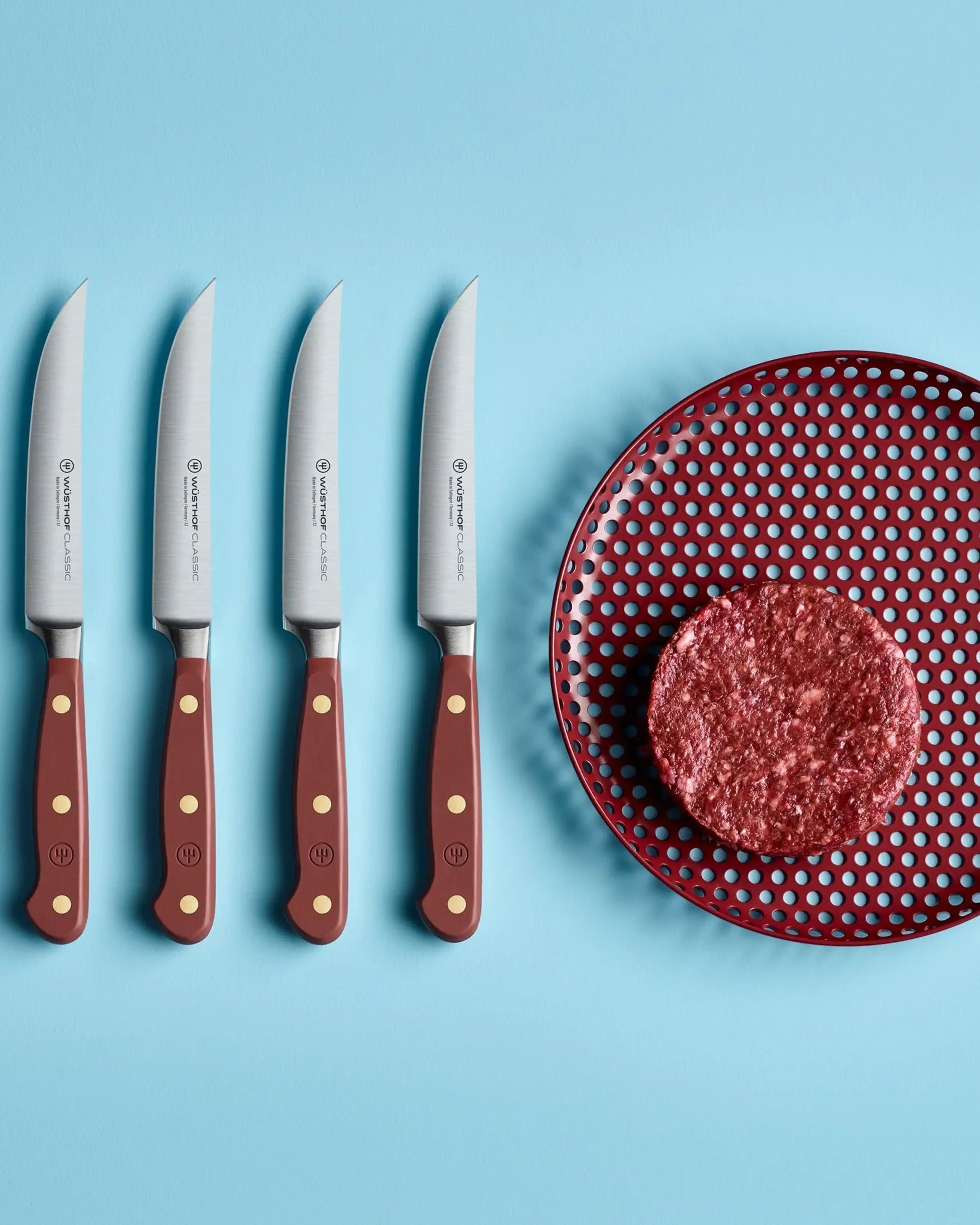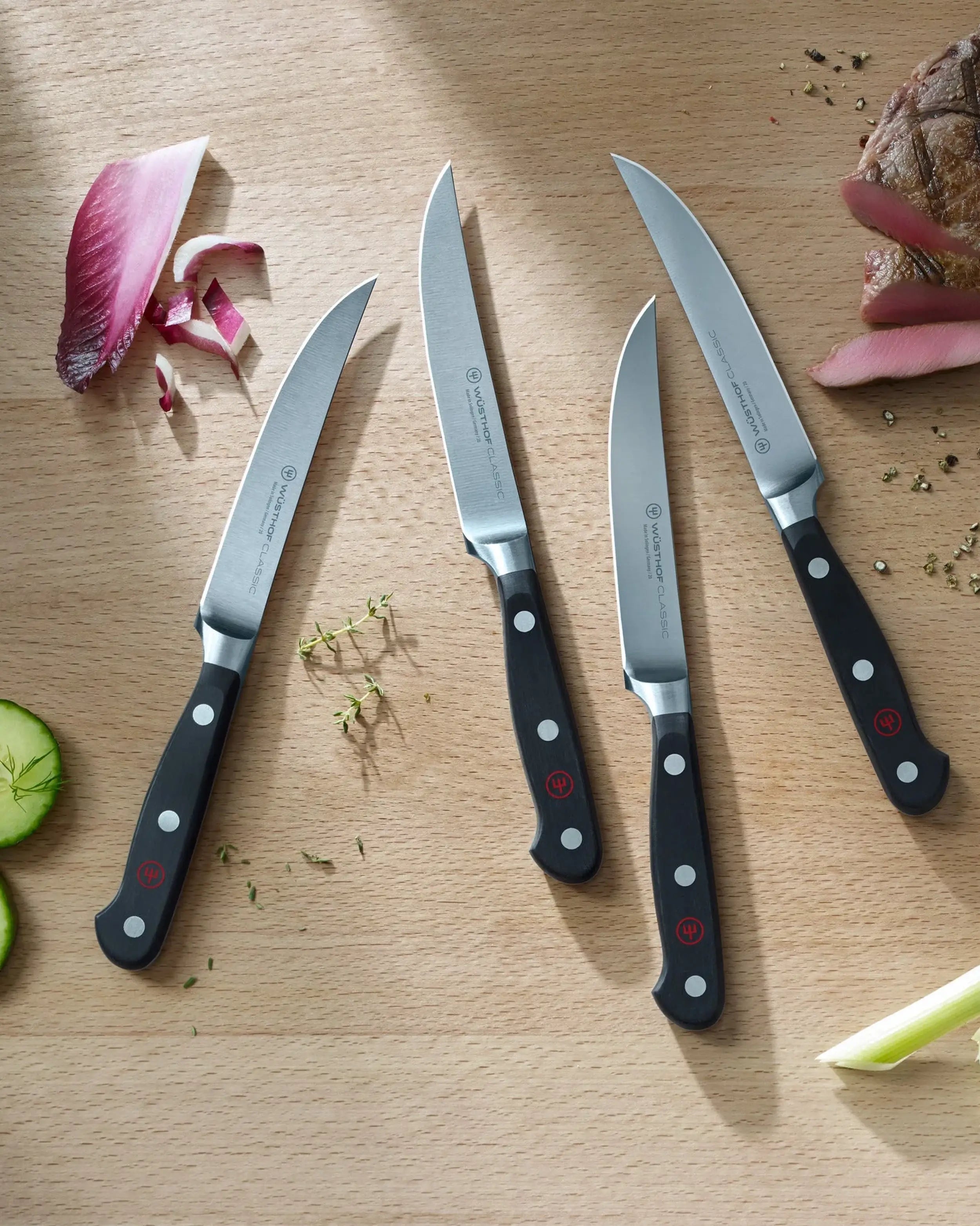 Ya sea que comiences con el wusthof classic 4 piece steak knife set o busques complementar un wusthof classic 6 piece steak knife set más grande, estas hojas ofrecen calidad duradera y nitidez profesional. Agrégalas a tu selección confiable de kitchen tools, o combínalas con otros cuchillos wusthof classic color para un espectro completo de precisión y estilo, características de nuestra selección de Cutlery & Co.