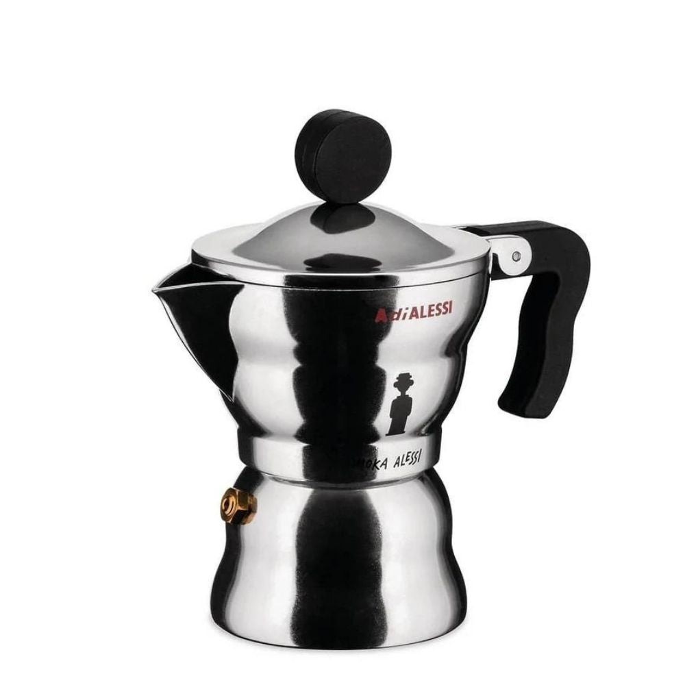 Alessi continúa transformando los hábitos diarios en iconos de diseño. De la colección de sets de té y café, esta moka es tu elegante puerta de entrada al momento perfecto del espresso.