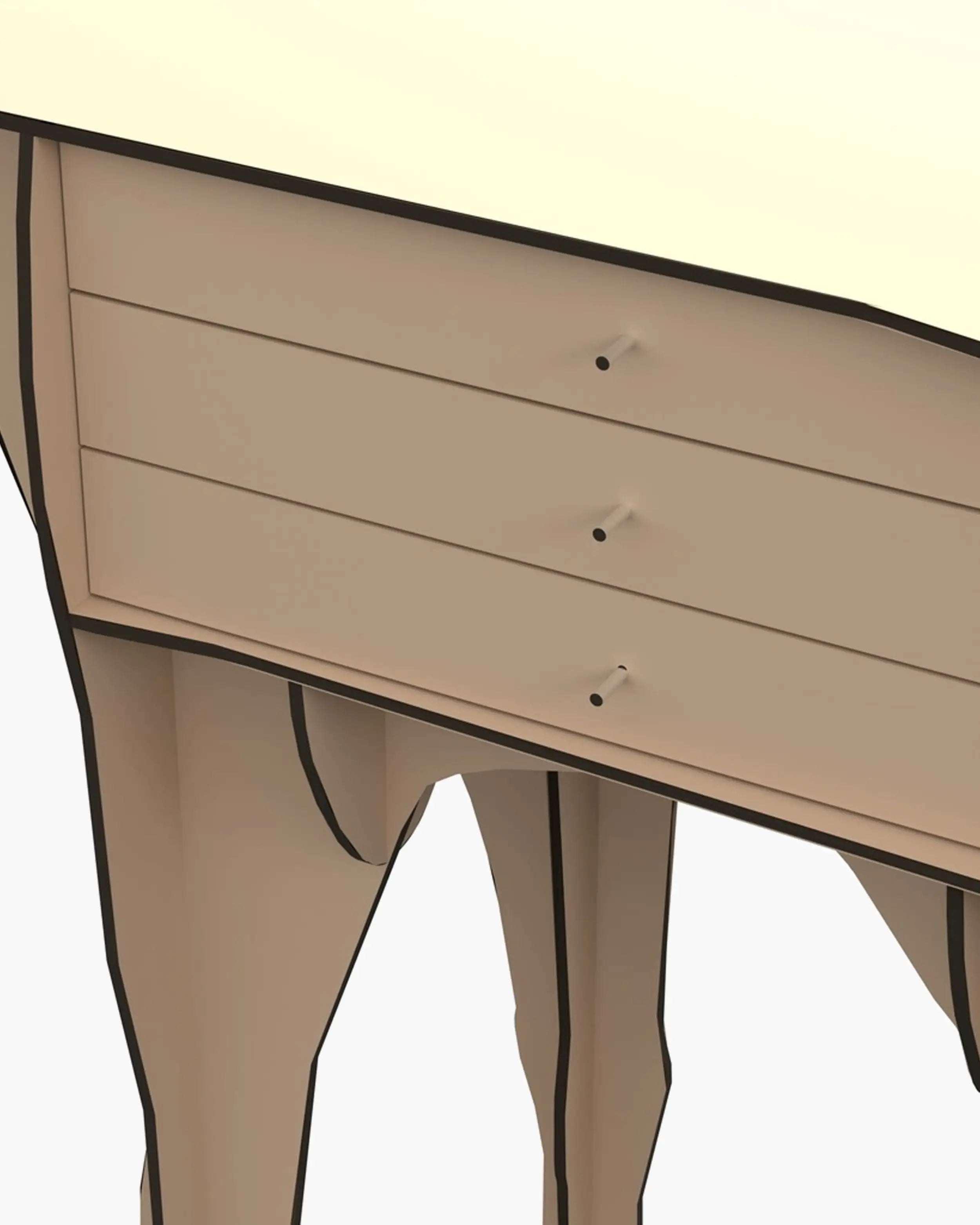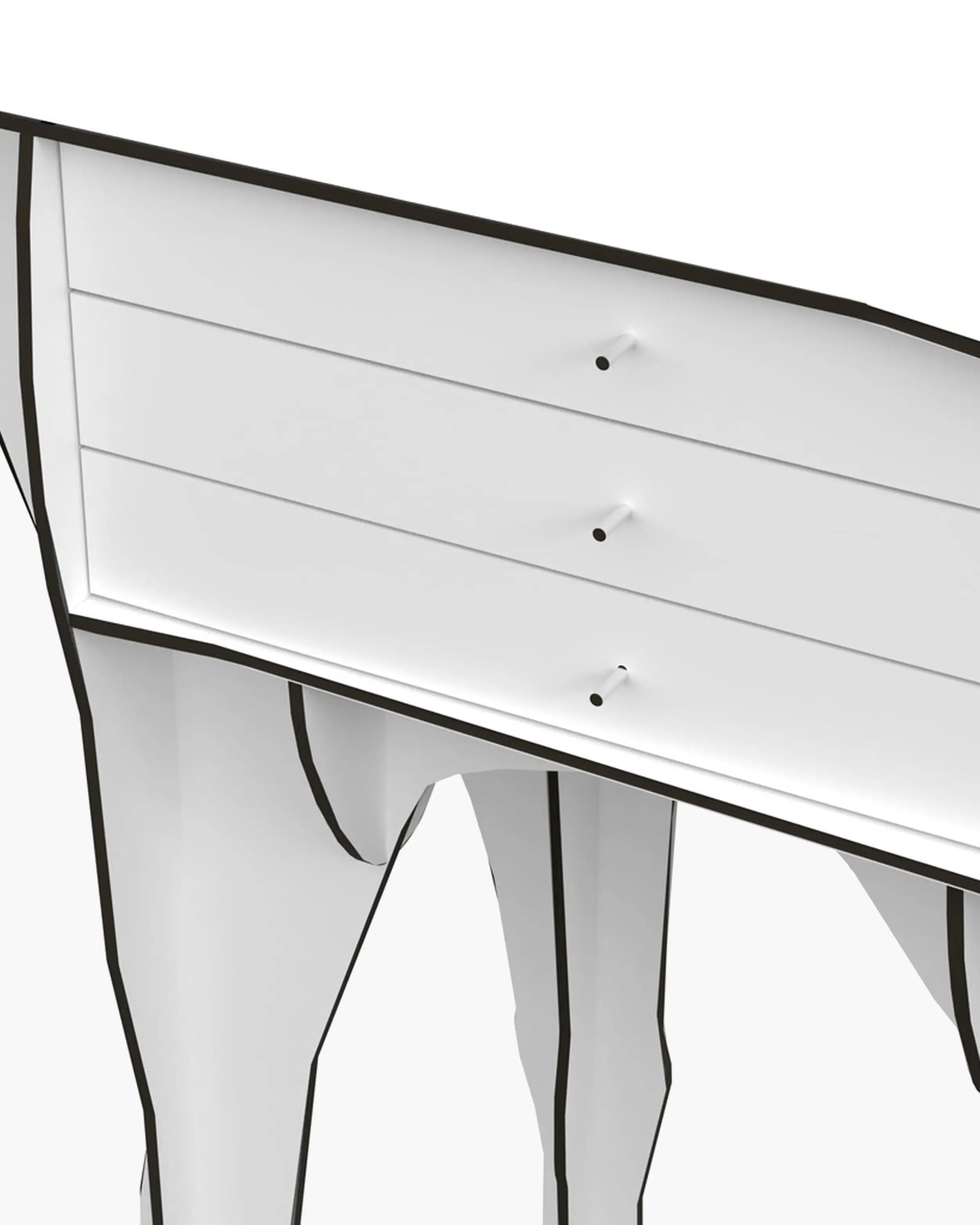 Más allá de su forma llamativa, esta mesa consola moderna ibride está diseñada para la conveniencia diaria. Con tres cajones discretos, ofrece un amplio espacio de almacenamiento para mantener los esenciales organizados mientras mantiene una superficie libre de desorden. Ideal para quienes buscan una mesa consola de pared Ibride elegante pero funcional, combina arte con practicidad de una manera que realza cualquier espacio habitable.