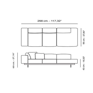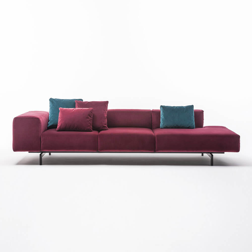 Kartell Sofá modular Largo Velvet de 3 plazas en terciopelo rojo