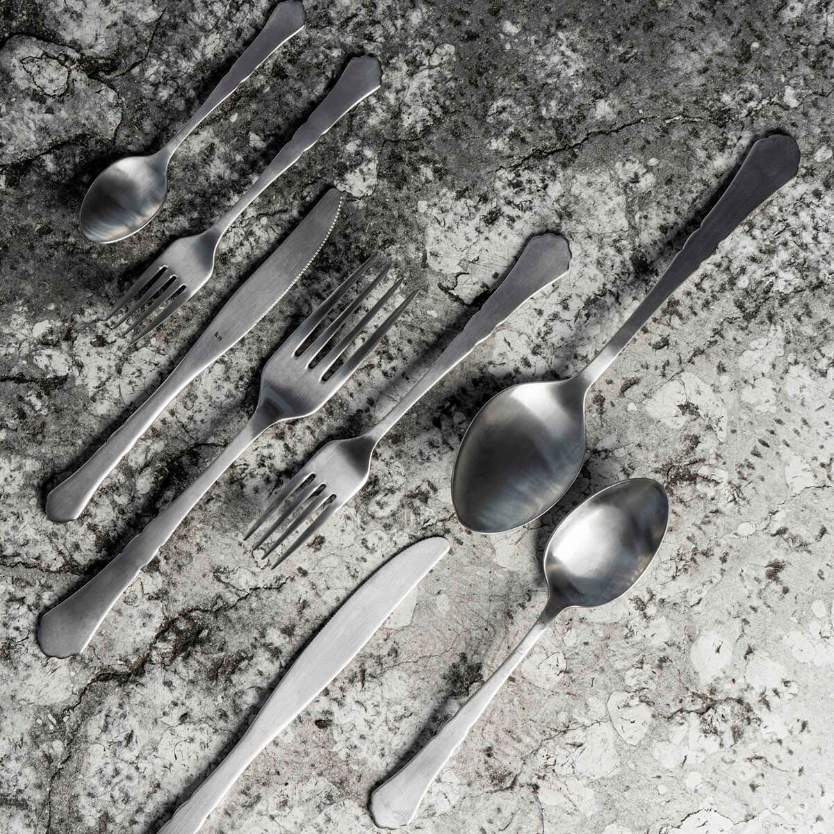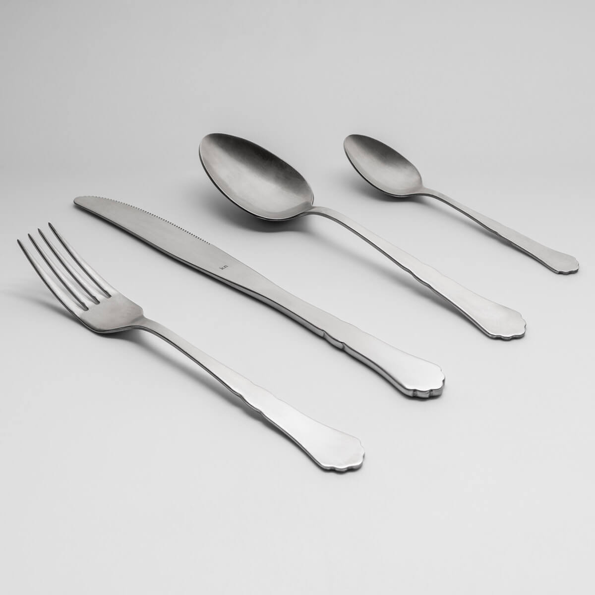 Diseñado por KnIndustrie y fabricado con acero de alta calidad, este juego con acabado satinado incluye 6 cucharas de mesa, 6 tenedores de mesa, 6 cuchillos de mesa y 6 cucharillas de té. Cada pieza es apta para lavavajillas y adecuada para el uso diario de alimentos, combinando la estética de cubiertos artesanales knindustrie con la practicidad de las herramientas modernas para comer. Ya sea que estés seleccionando tu primer juego de cubiertos o renovando tu decoración de mesa, esta colección cumple con todos los requisitos.