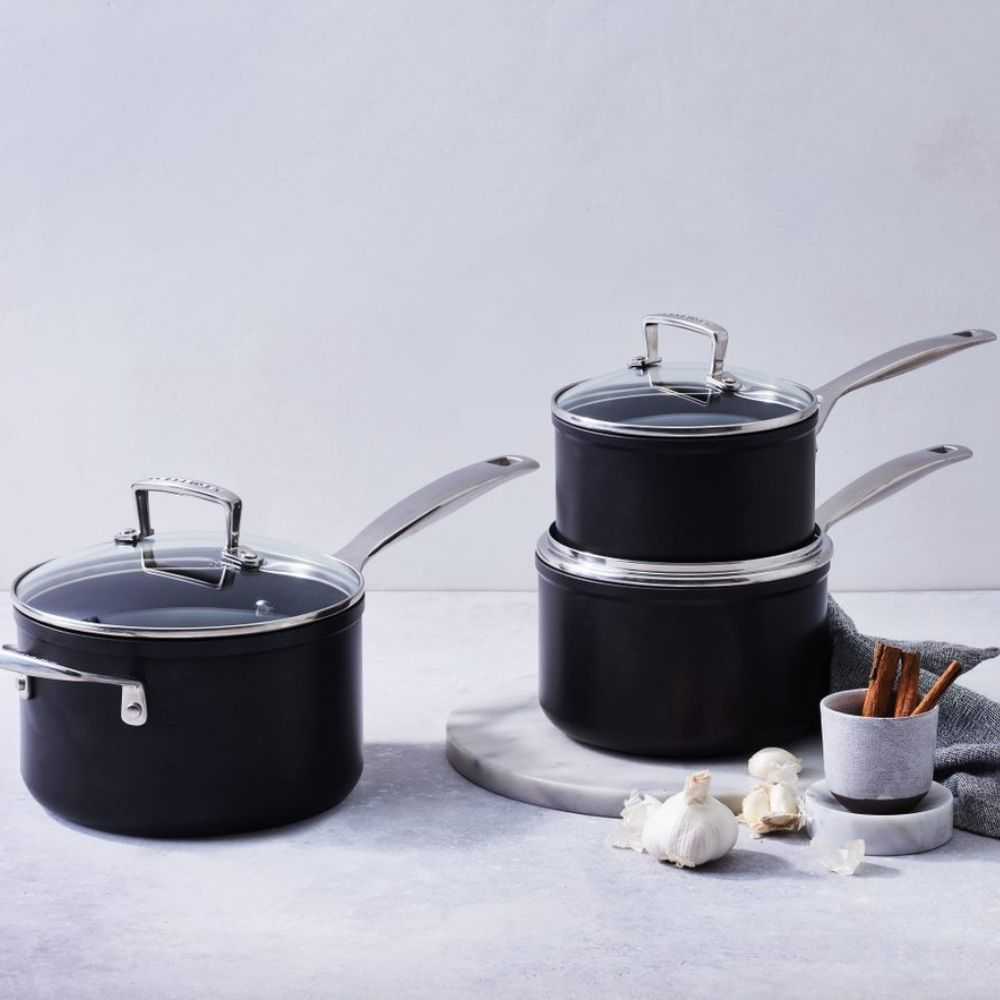 Le Creuset Juego de 3 cacerolas con revestimiento antiadherente reforzado y tapa de vidrio