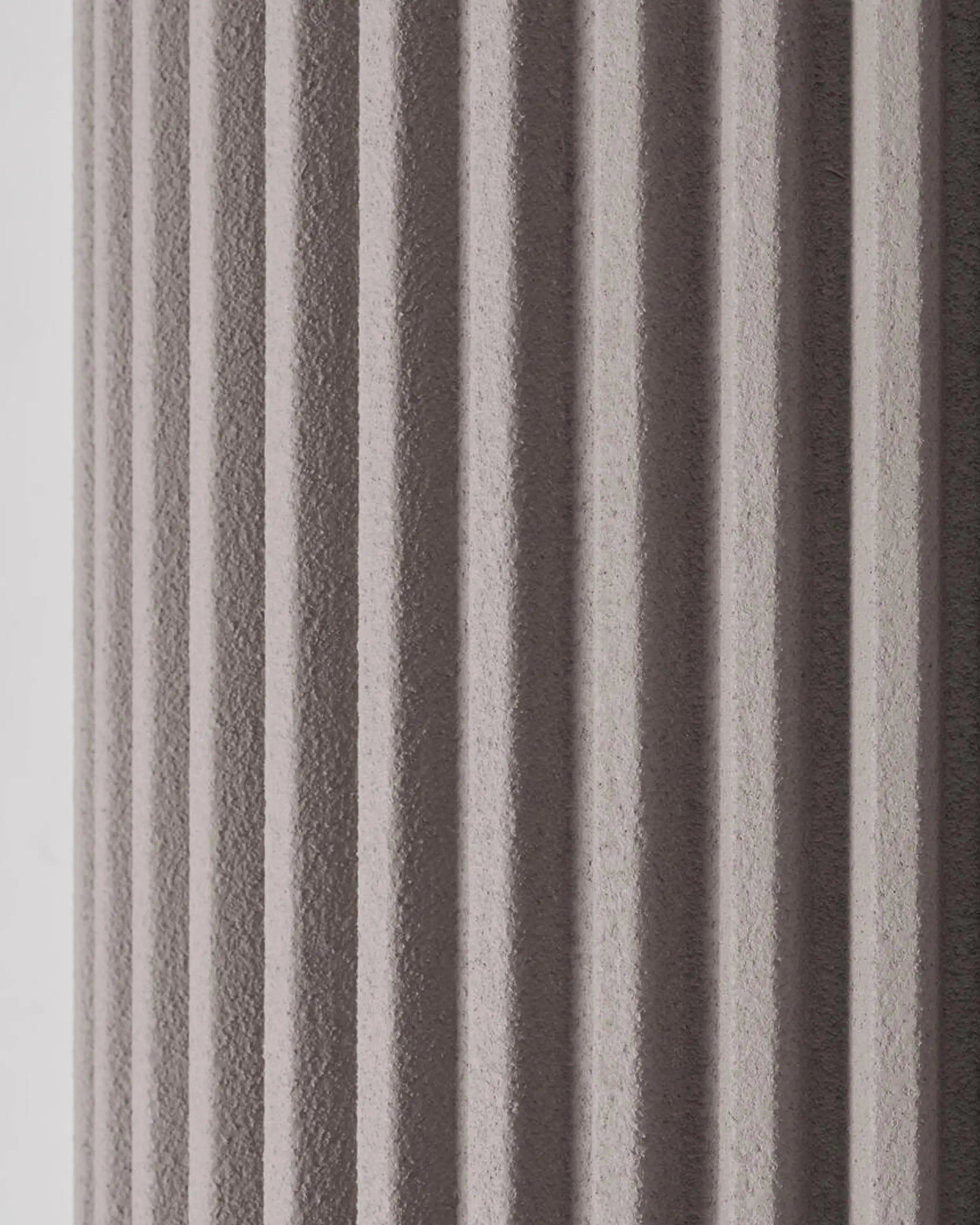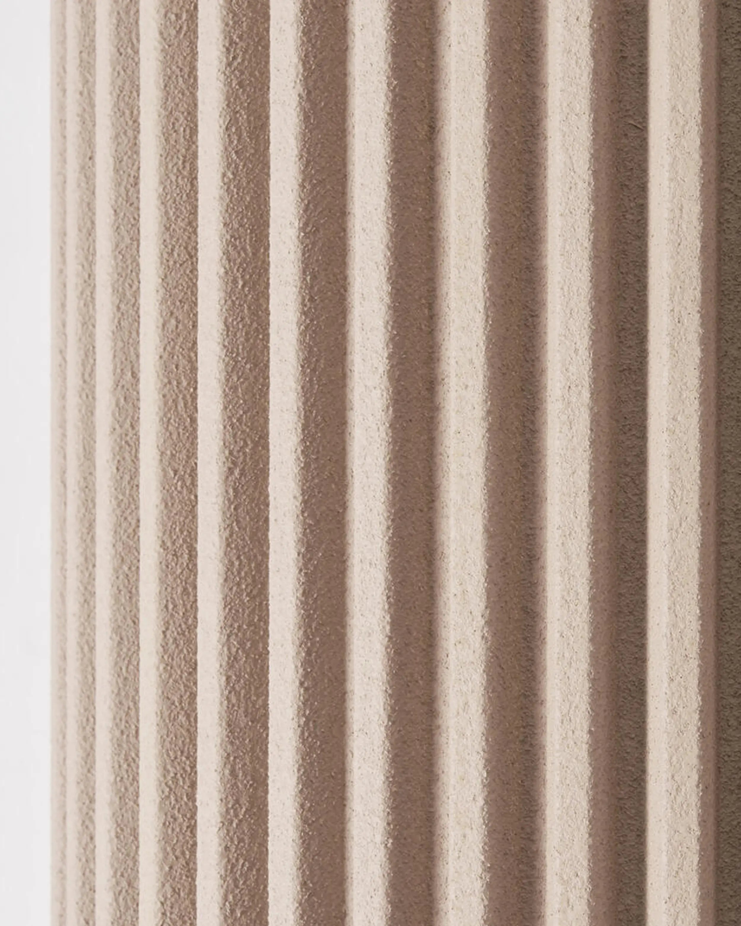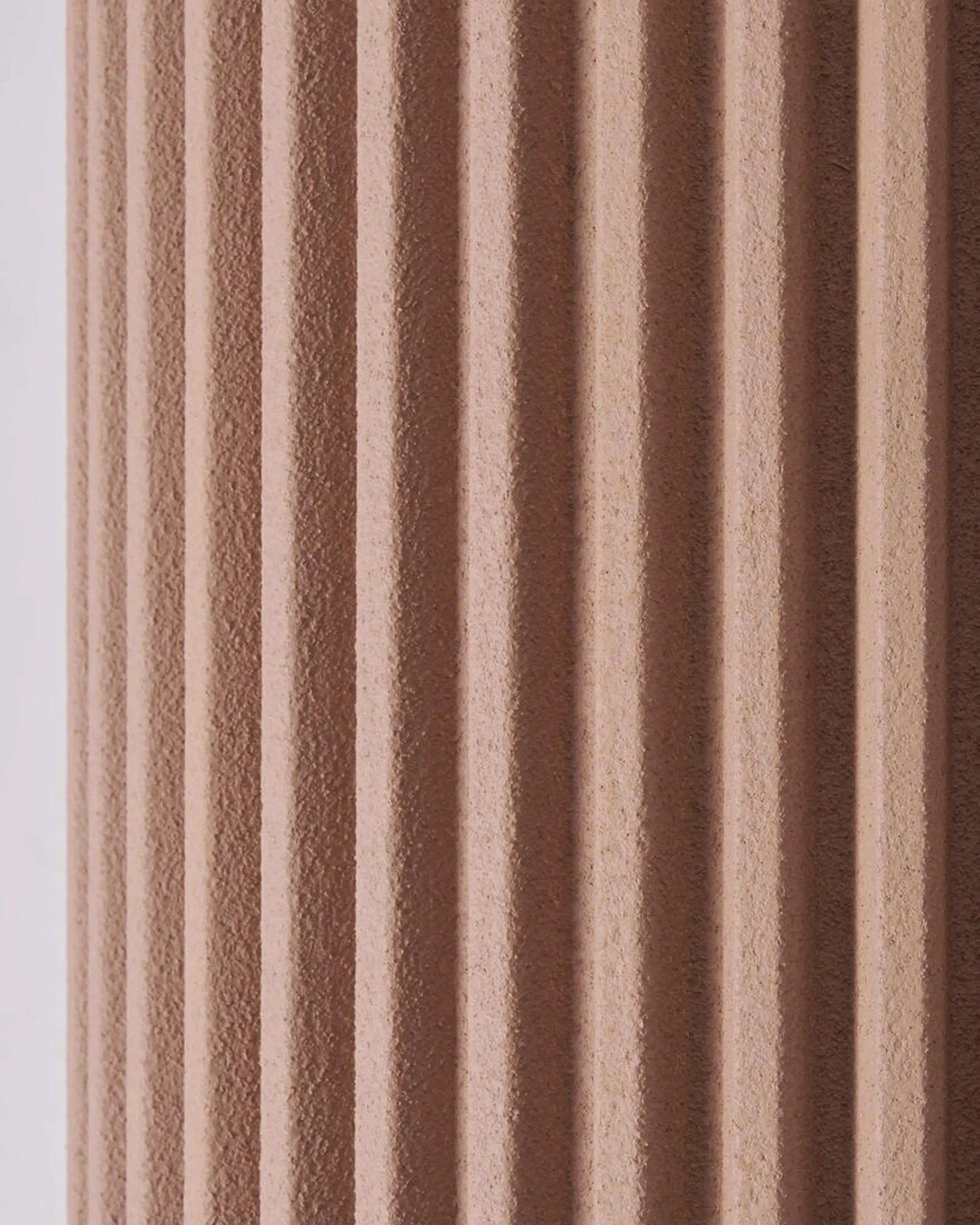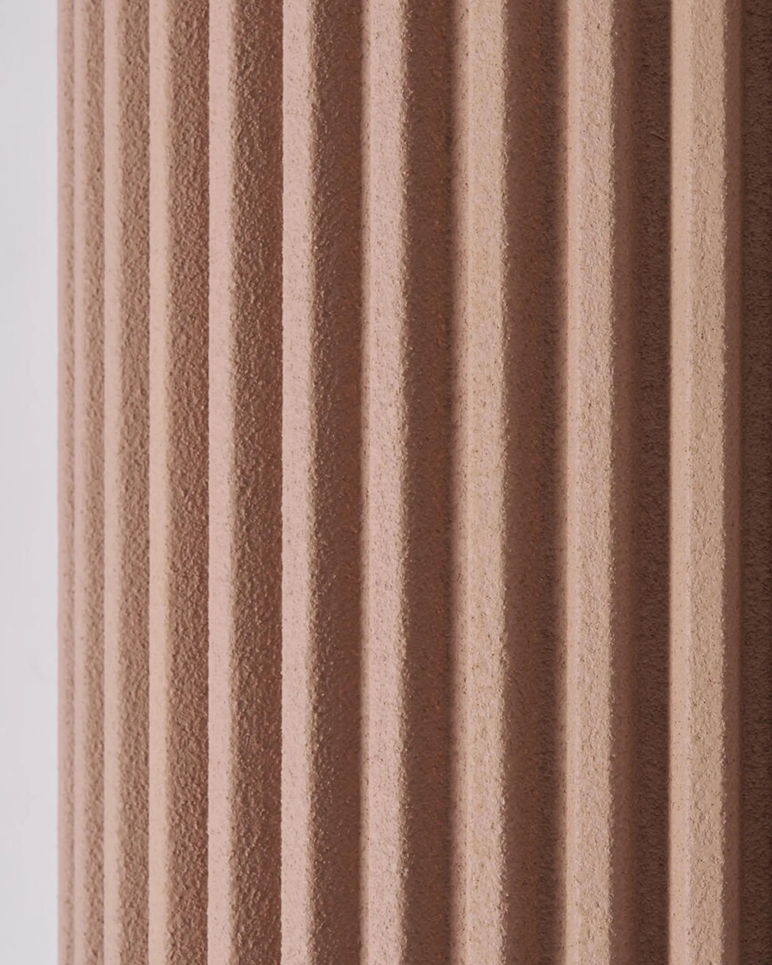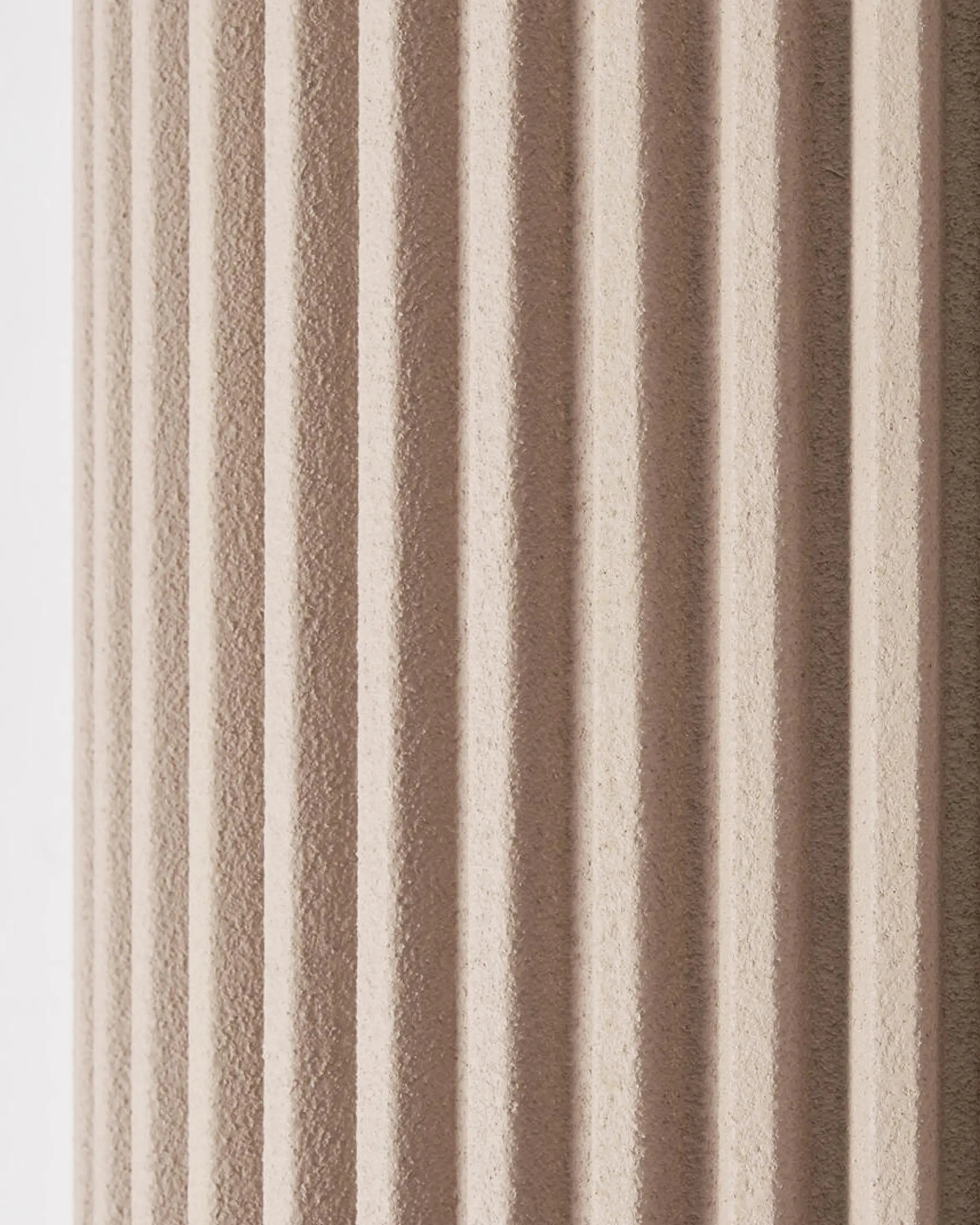 Corkcrete disponible en beige, gris o topo. Estos procesos artesanales generan ligeras variaciones que no son defectos sino signos de autenticidad. Para arquitectos y estilistas que comparan