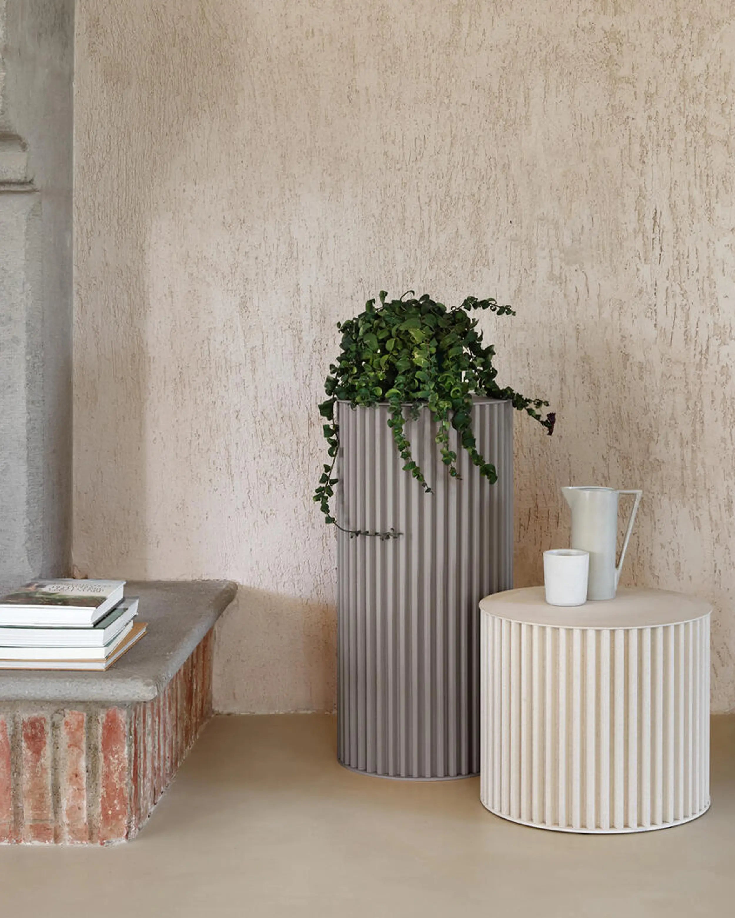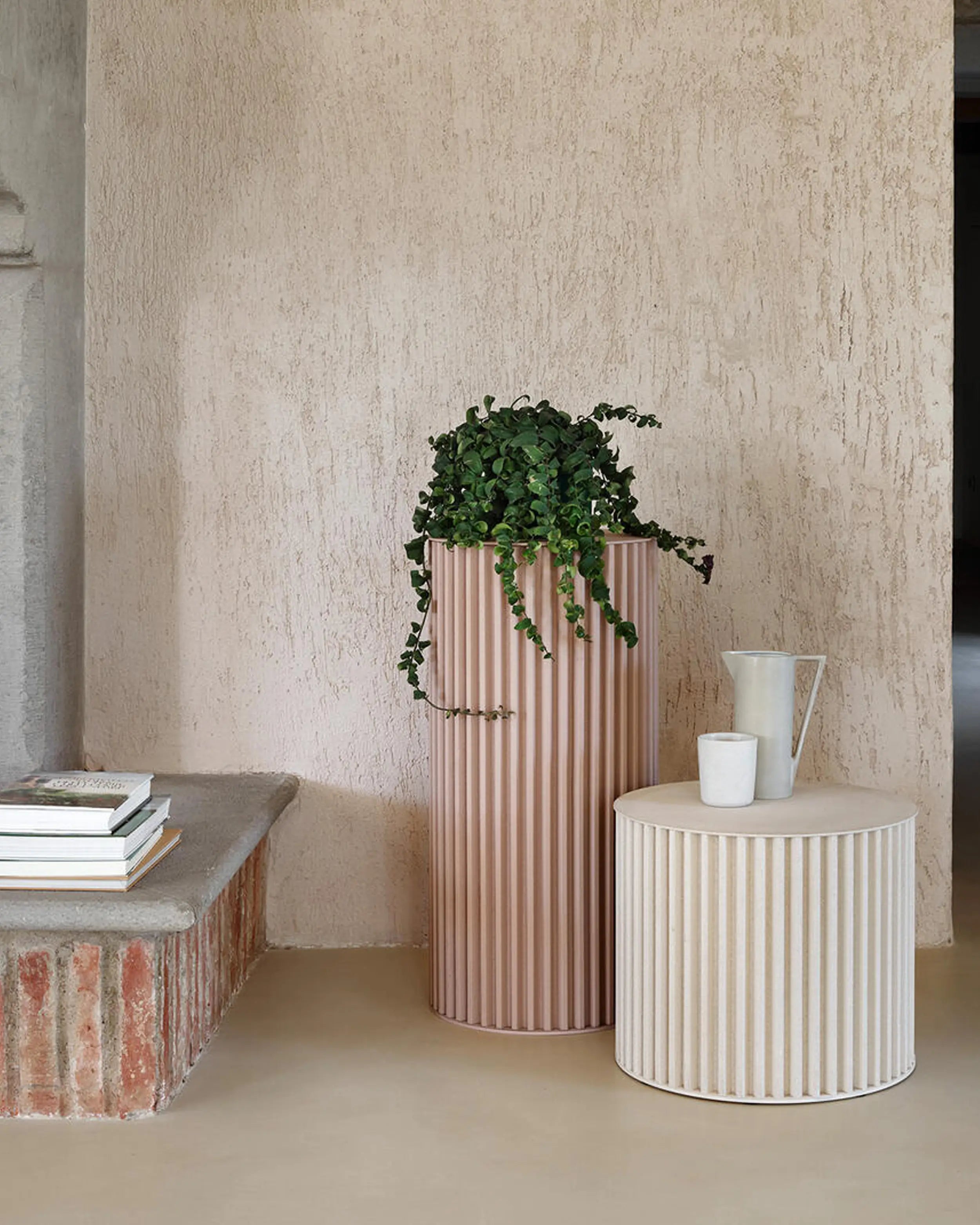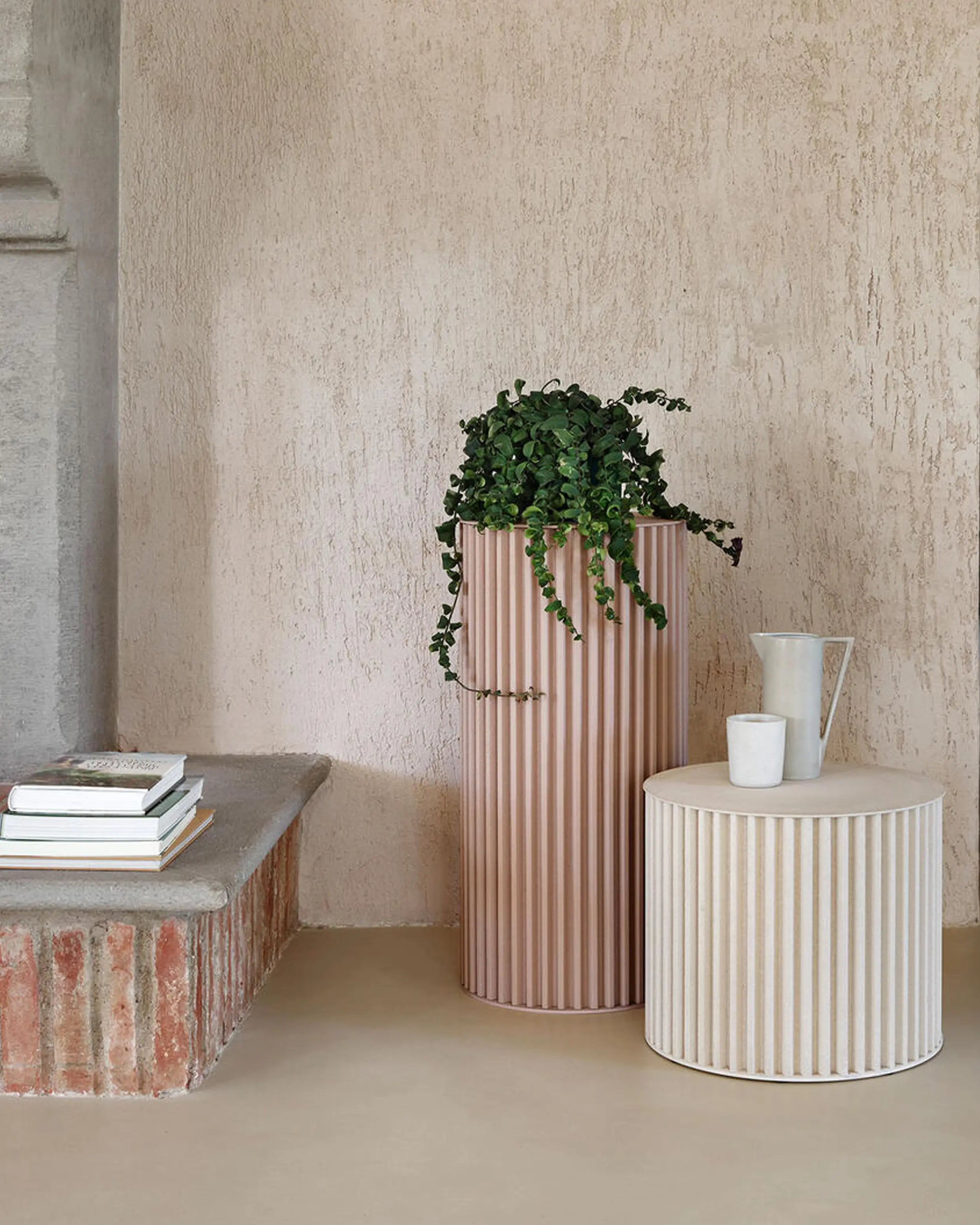 mesas bajas, se adapta fácilmente a salones, vestíbulos de hoteles o terrazas, gracias a su doble identidad como pieza tanto de interior como de exterior. Disponible en diferentes alturas y colores, ofrece a los diseñadores múltiples oportunidades de configuración: agrupadas en conjuntos, crea ritmos dinámicos; como elemento único, sirve como un acento escultórico. Esta naturaleza camaleónica hace que Herclino sea especialmente valorada por conocedores que aprecian soluciones de