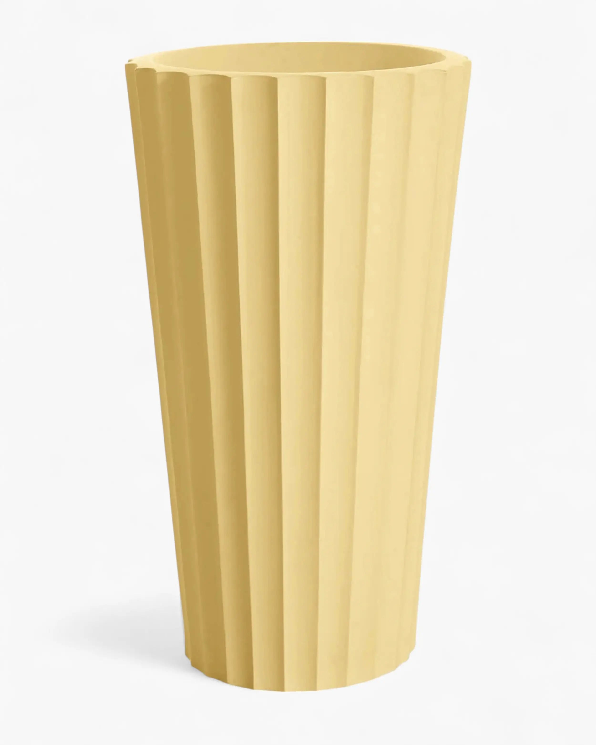 Mientras que su concepto recuerda las ánforas de la antigüedad, el Eufronio habla el lenguaje de la innovación a través de su cuerpo de polietileno. Resistente a golpes, rayos UV y temperaturas que van de -35°C a +80°C, combina practicidad con durabilidad. Teñido en solución y completamente reciclable, sus colores permanecen vibrantes con el tiempo, atrayendo a estudios de diseño y arquitectos paisajistas que buscan macetas contemporáneas para exteriores duraderas o elementos escultóricos para villas de lujo y terrazas de alta gama para hostelería.