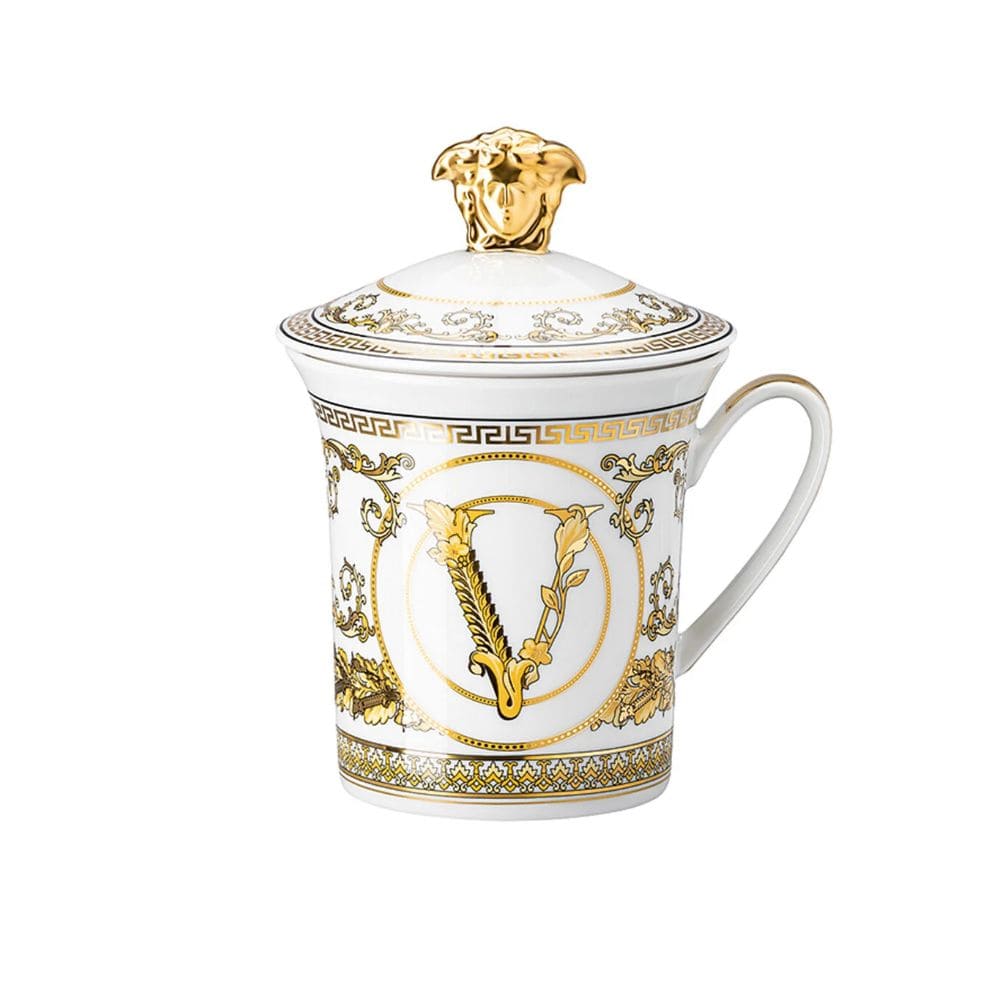 Versace se encuentra con Rosenthal Colección de tazas 30 años Virtus Gala Taza blanca con tapa